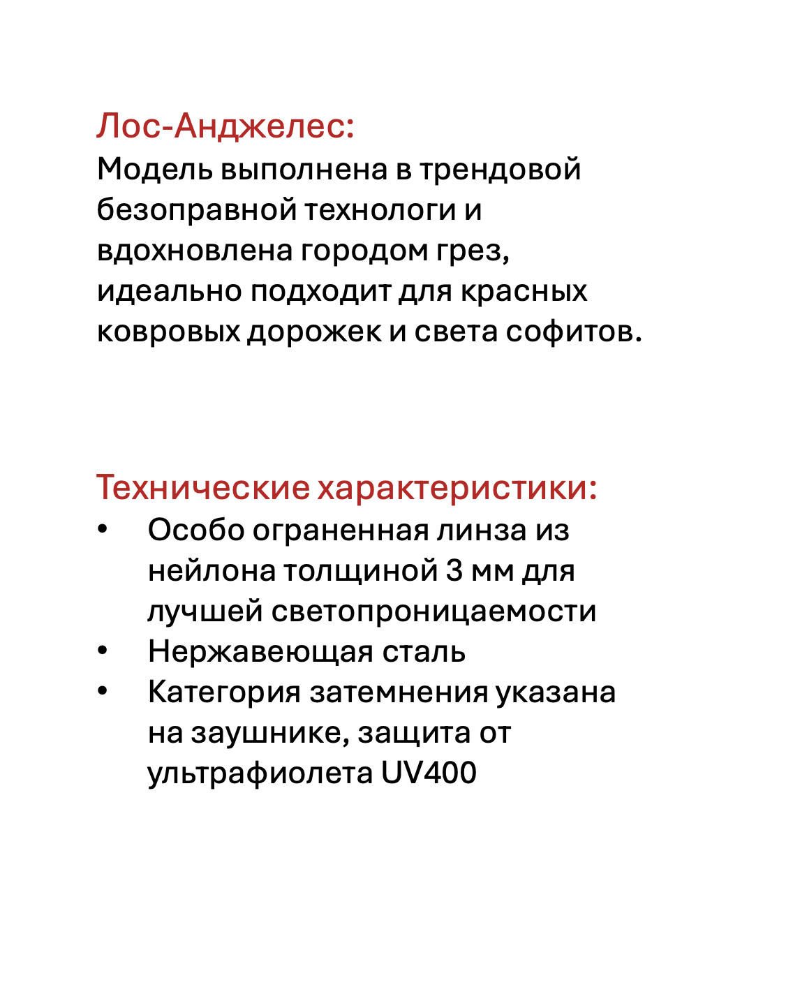 Модель выполнена в трендовой безоправной технологи и вдохновлена городом грез, идеально подходит для красных ковровых дорожек и света софитов.