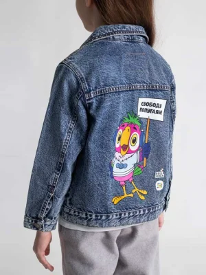 Джинсовая куртка Свободу попугаям SMF - Купить с доставкой по России в магазине Bullfinch. Джинсовые куртки, Детская одежда. Гипоаллергенные краски. Премиальное качество. Размеры: Д4-5, Д5-6, Д9-10