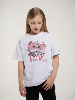 Купить детскую oversize футболку - Футболка Басик & Ко "Любовь в твоих глазах" с доставкой по России в магазине Bullfinch. Размеры: Д5-6 , Д7-8
