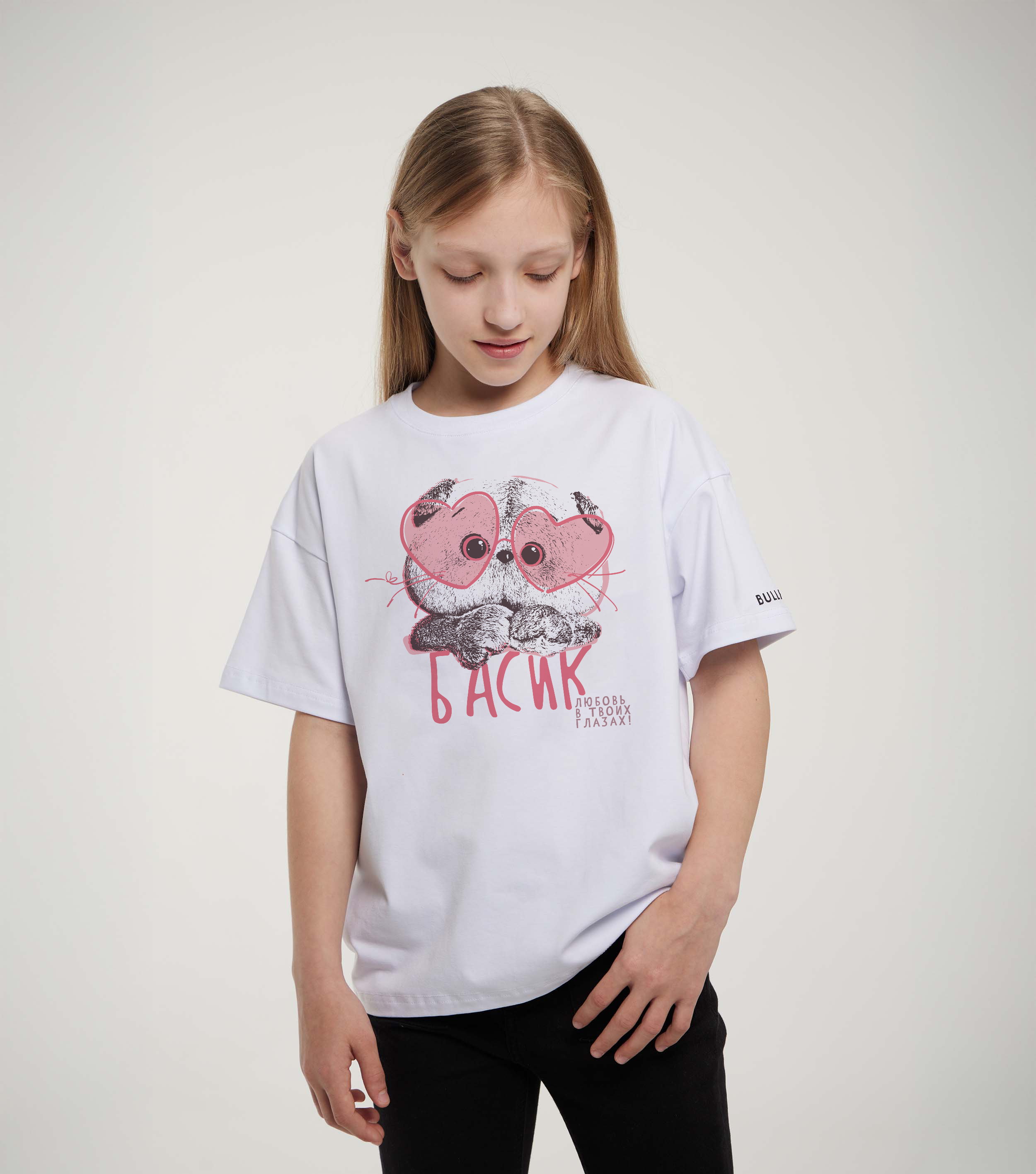 Купить детскую oversize футболку - Футболка Басик & Ко "Любовь в твоих глазах" с доставкой по России в магазине Bullfinch. Размеры: Д5-6 , Д7-8 , Д9-10