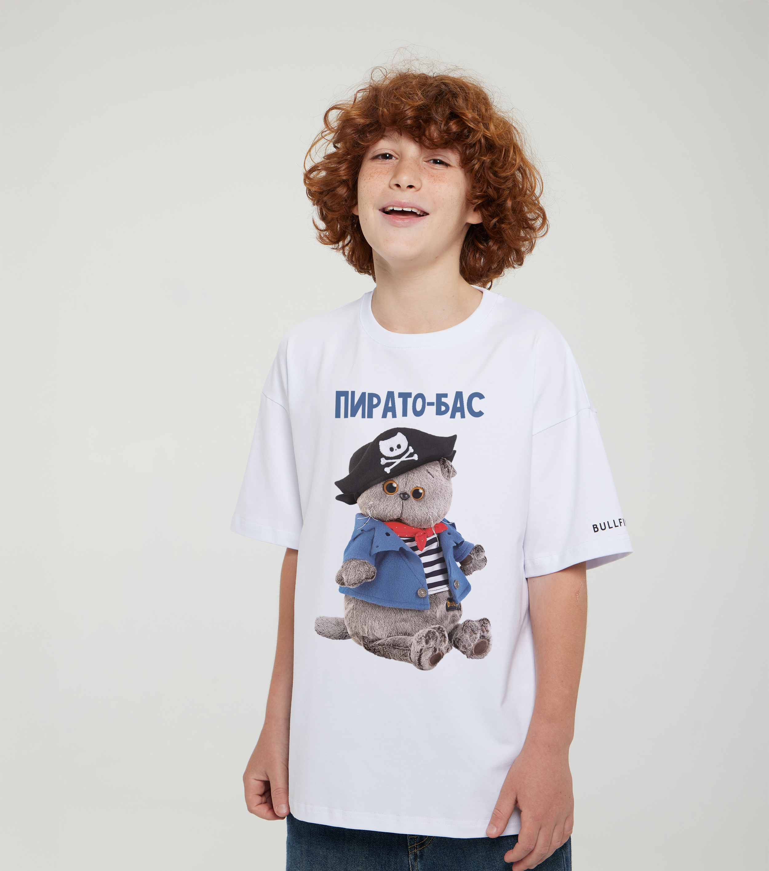 Купить детскую oversize футболку - Футболка Басик & Ко "ПиратоБас" с доставкой по России в магазине Bullfinch. Размеры: Д5-6 , Д9-10 , Д7-8