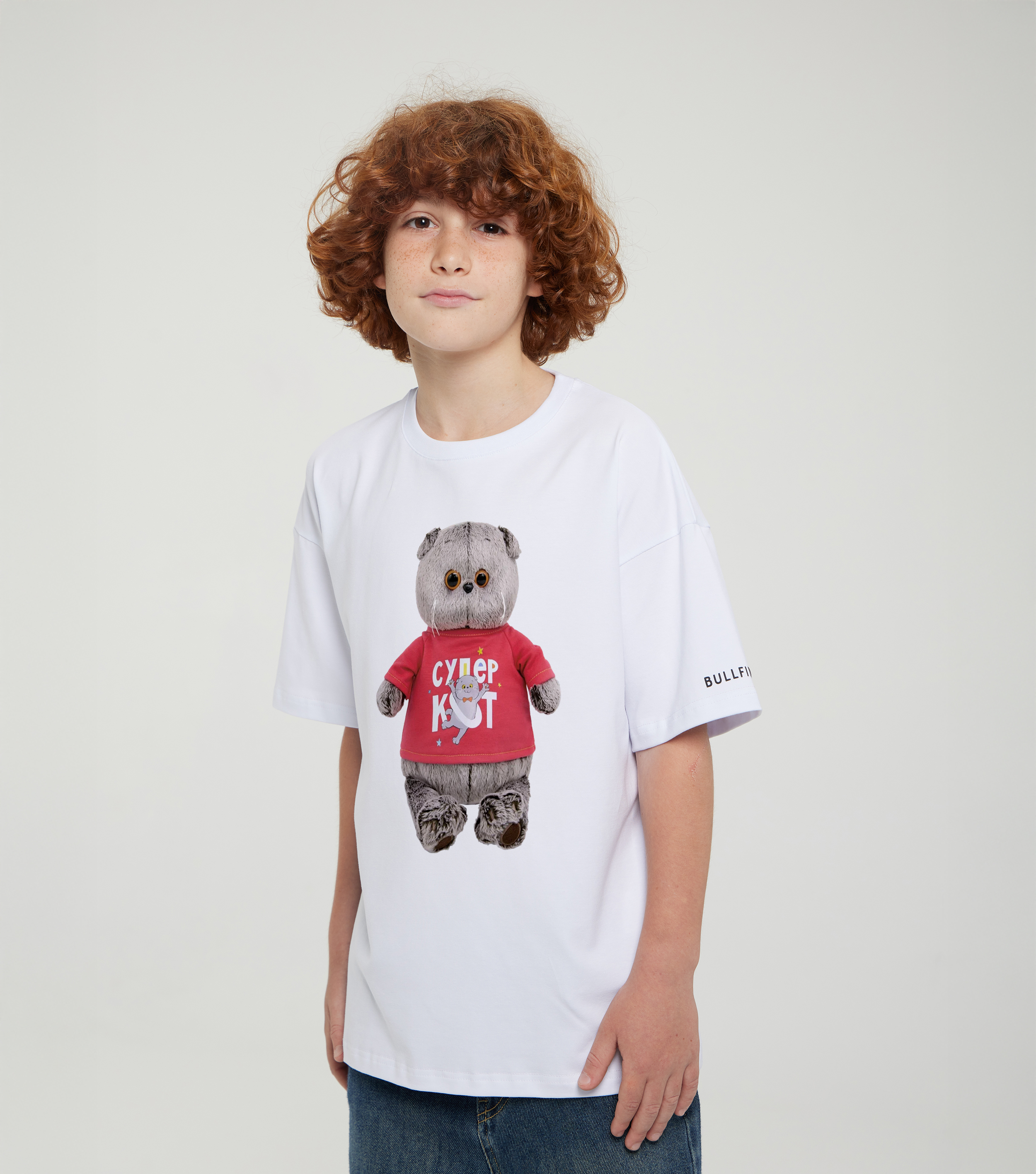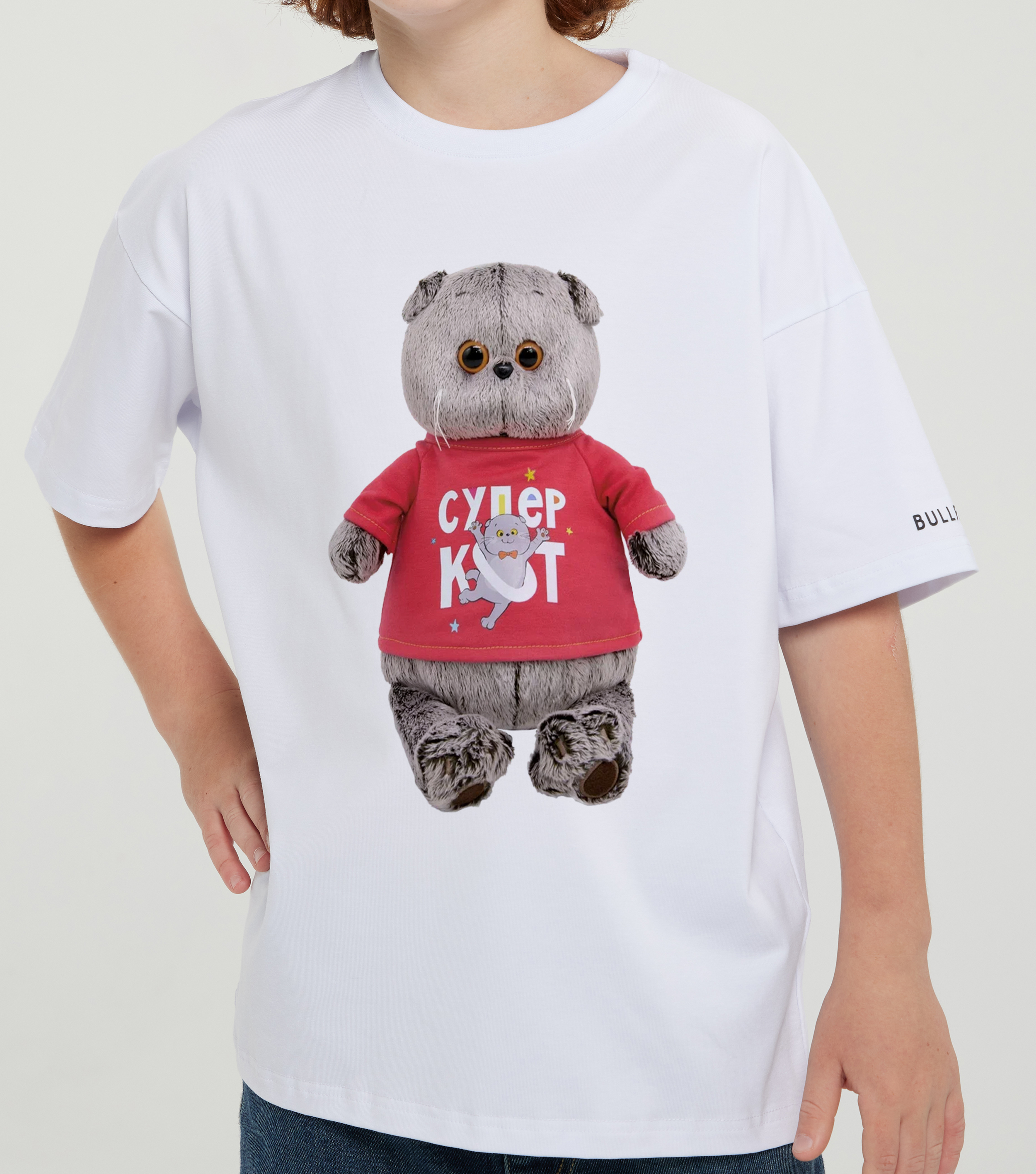 Купить детскую oversize футболку - Футболка Басик & Ко "Супер Кот" с доставкой по России в магазине Bullfinch. Размеры: Д5-6 , Д7-8 , Д9-10