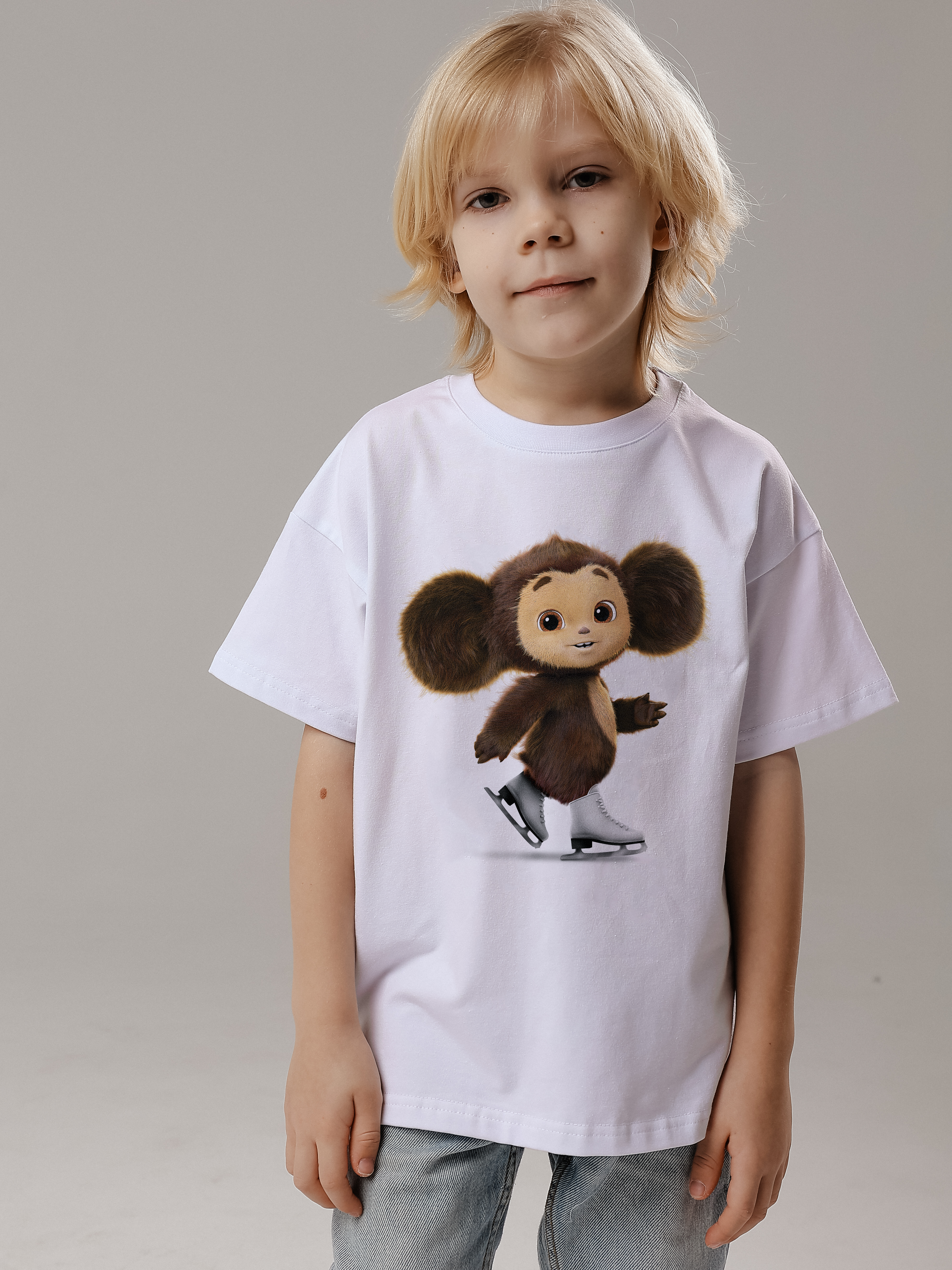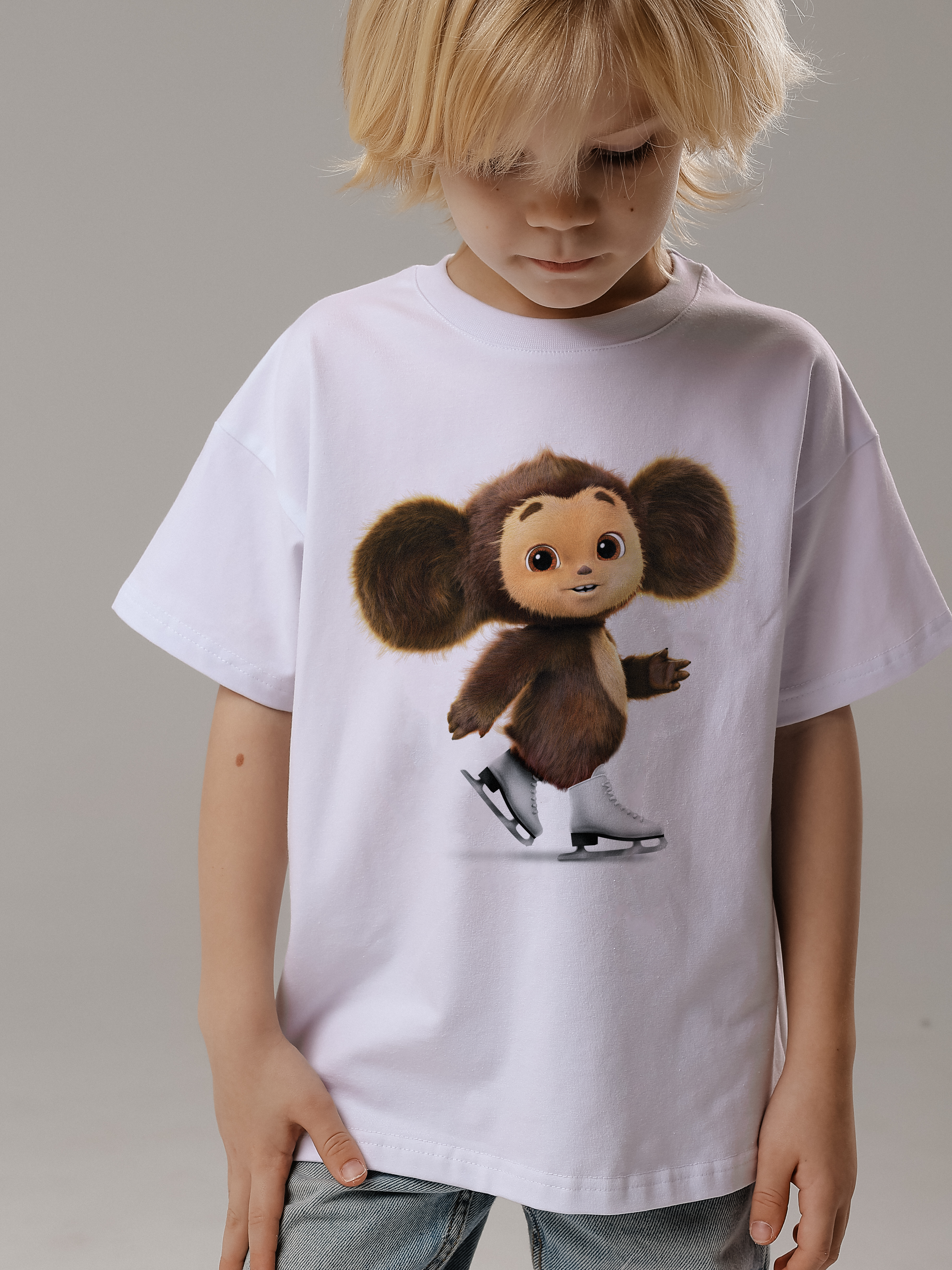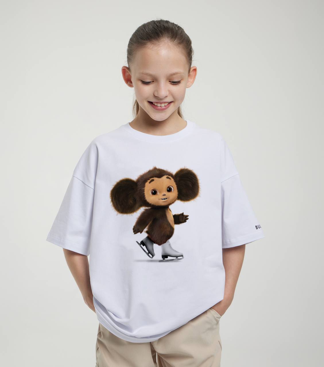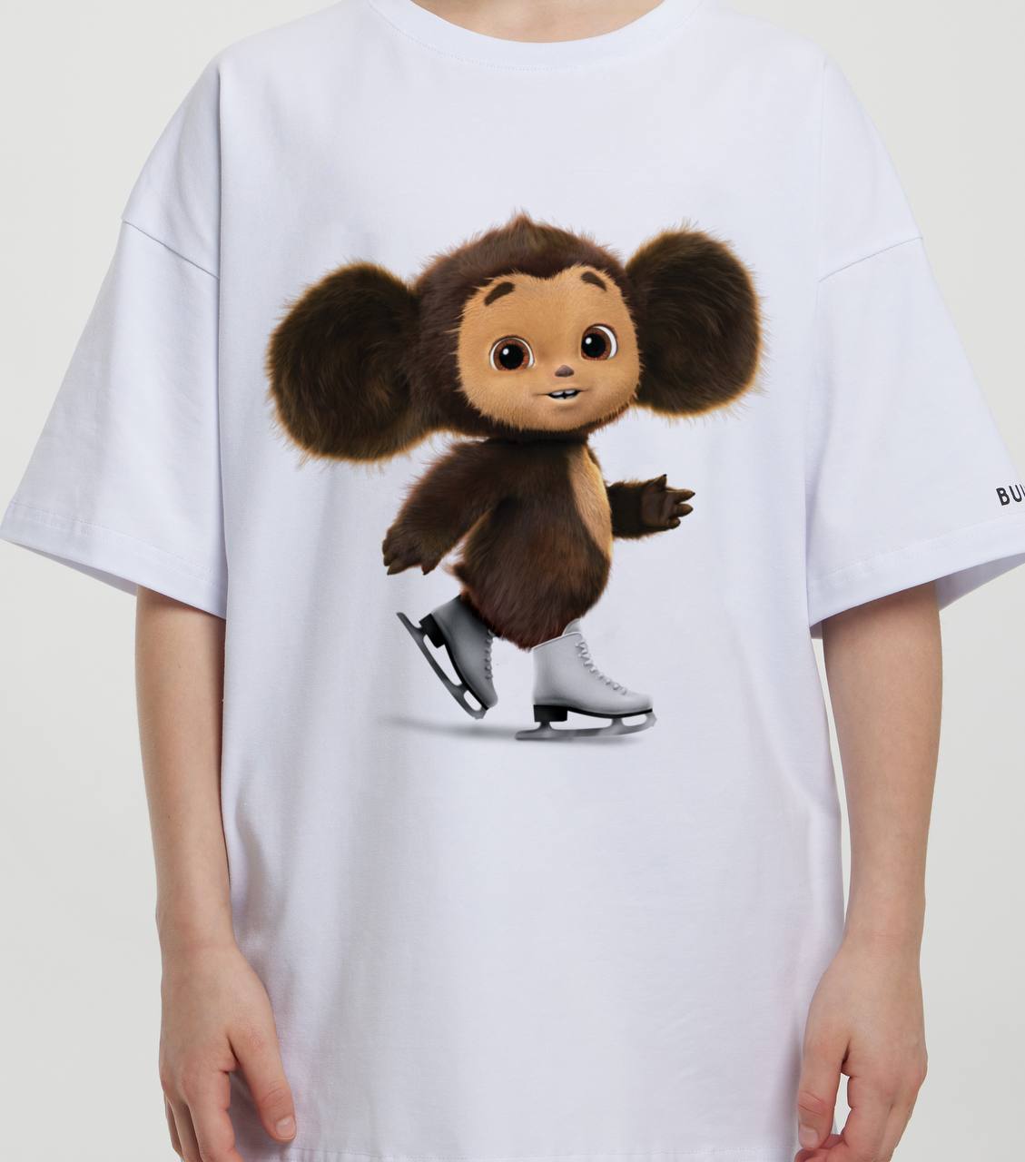 Купить детскую oversize футболку - Футболка Чебурашка на коньках с доставкой по России в магазине Bullfinch. Размеры: Д3-4 , Д5-6 , Д7-8 , Д9-10