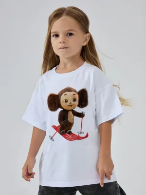 Купить детскую oversize футболку - Футболка Чебурашка на лыжах с доставкой по России в магазине Bullfinch. Размеры: Д5-6 , Д7-8