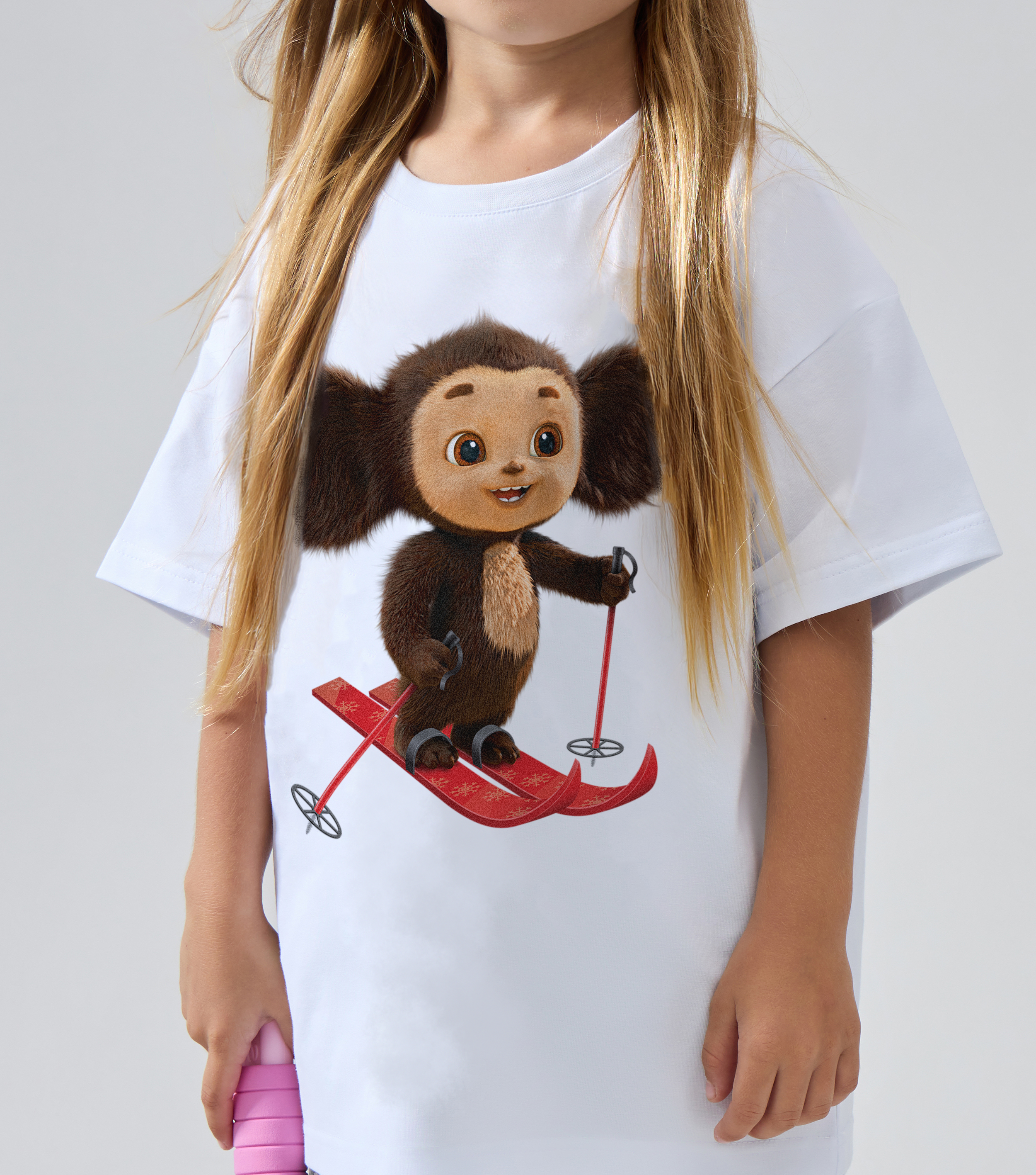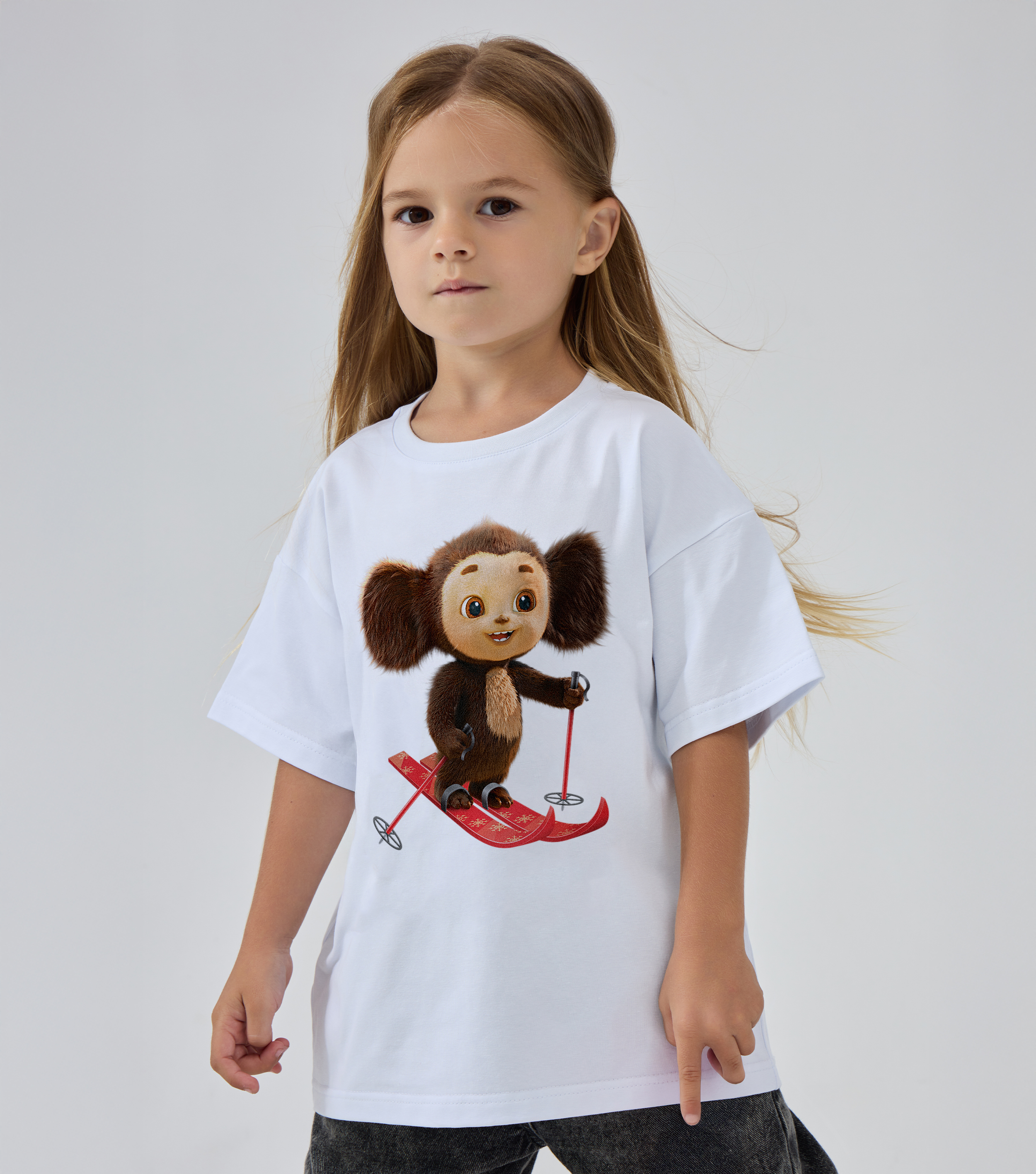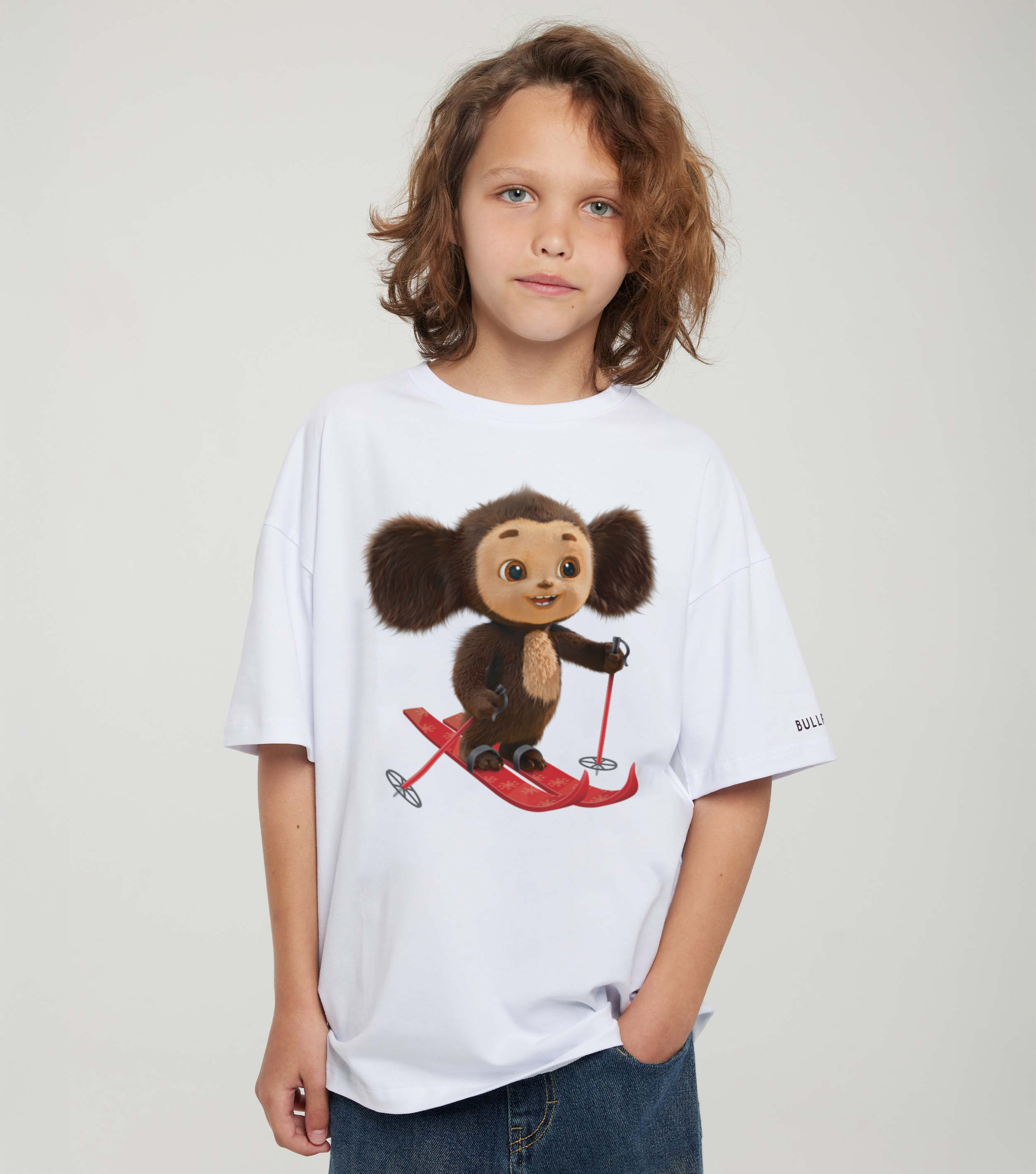 Купить детскую oversize футболку - Футболка Чебурашка на лыжах с доставкой по России в магазине Bullfinch. Размеры: Д5-6 , Д7-8 , Д9-10