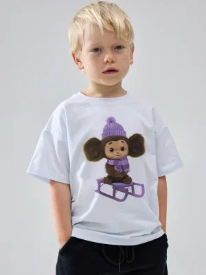 Купить детскую oversize футболку - Футболка Чебурашка на санках с доставкой по России в магазине Bullfinch. Размеры: Д5-6 , Д7-8