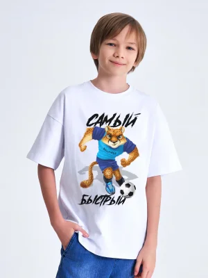 Купить детскую oversize футболку - Футболка Футбол Гепард с доставкой по России в магазине Bullfinch. Размеры: Д5-6 , Д7-8