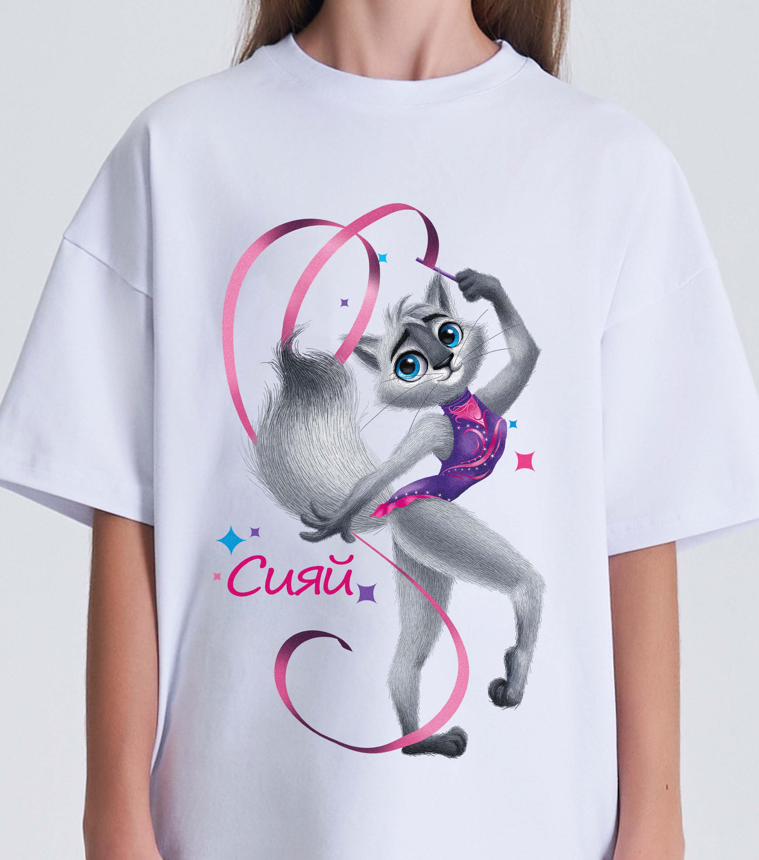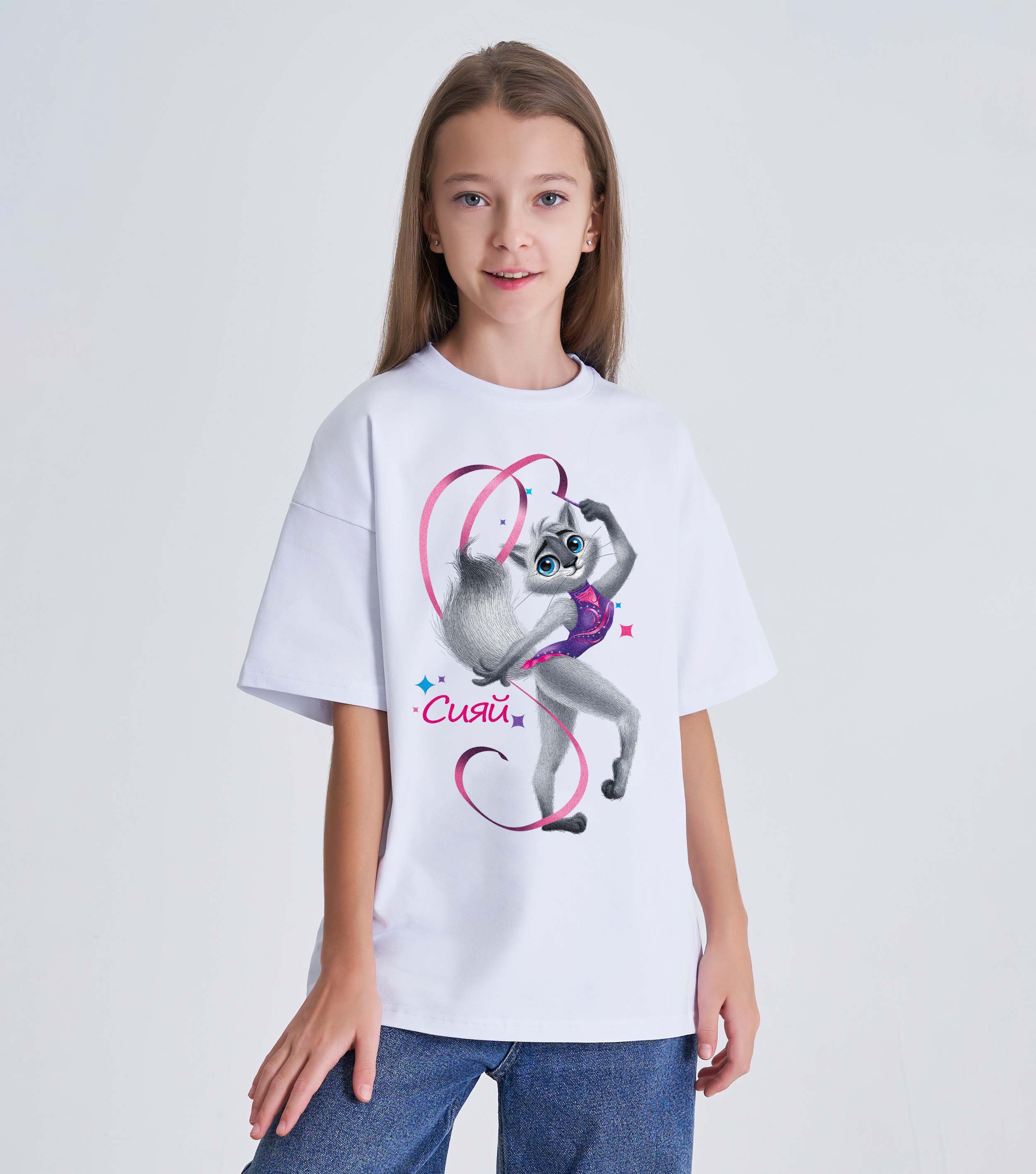 Купить детскую oversize футболку - Футболка Гимнастика. Кошечка с доставкой по России в магазине Bullfinch. Размеры: Д5-6 , Д7-8 , Д9-10