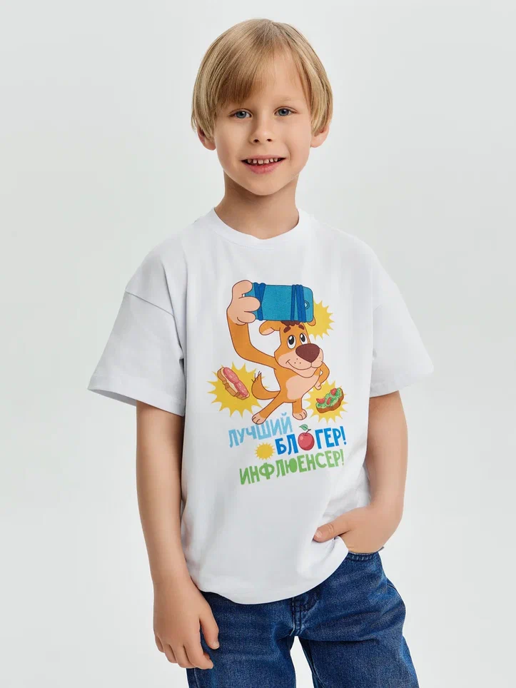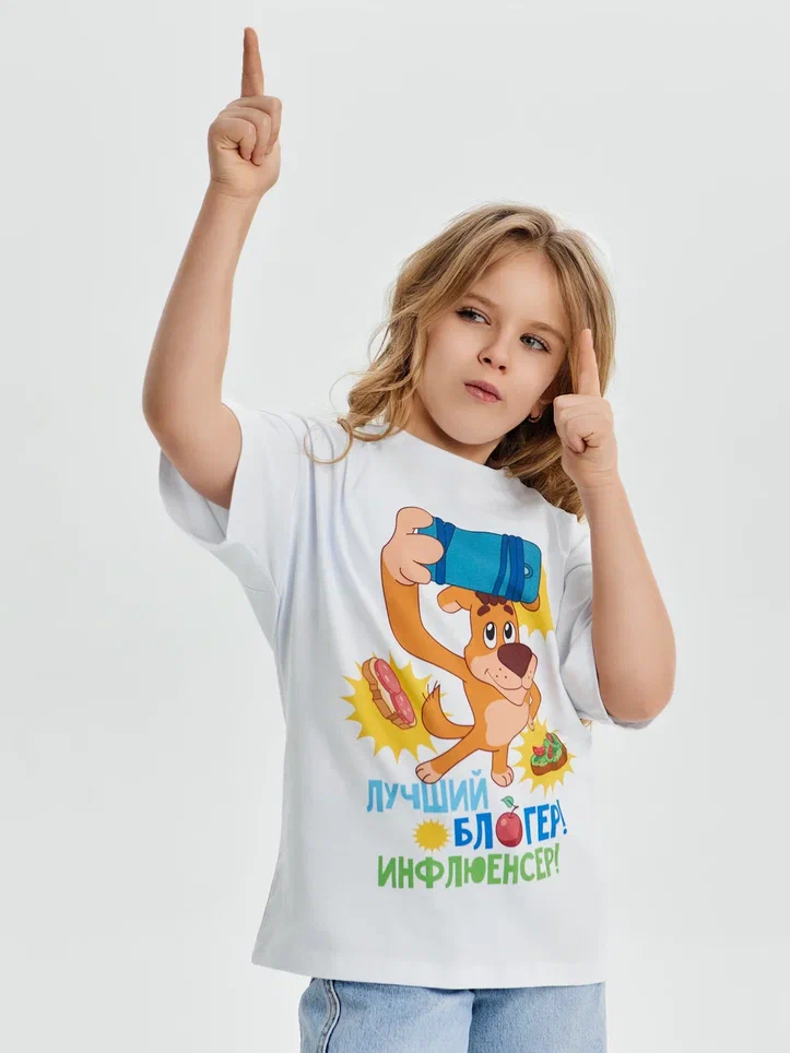 Купить детскую oversize футболку - Футболка Лучший блогер. Простоквашино с доставкой по России в магазине Bullfinch. Размеры: Д5-6 , Д7-8 , Д9-10