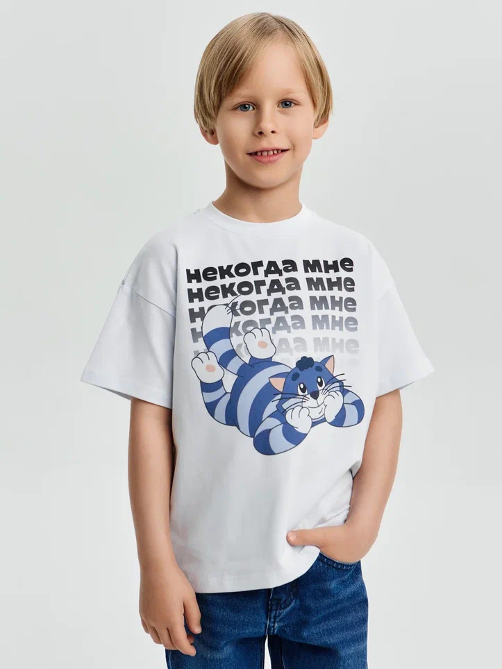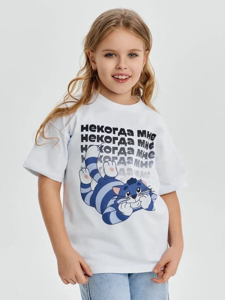 Купить детскую oversize футболку - Футболка Некогда мне. Простоквашино с доставкой по России в магазине Bullfinch. Размеры: Д5-6 , Д7-8 , Д9-10