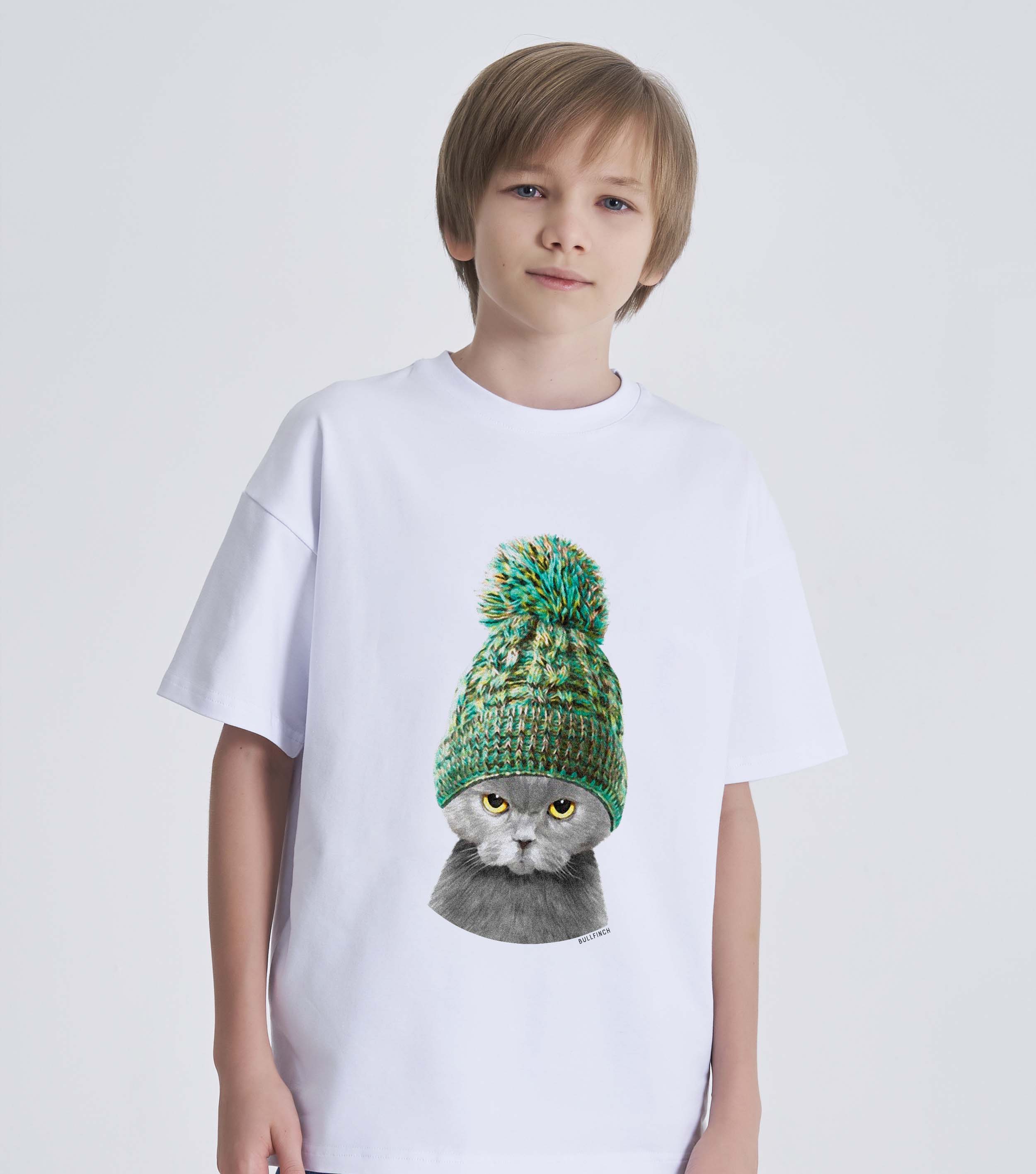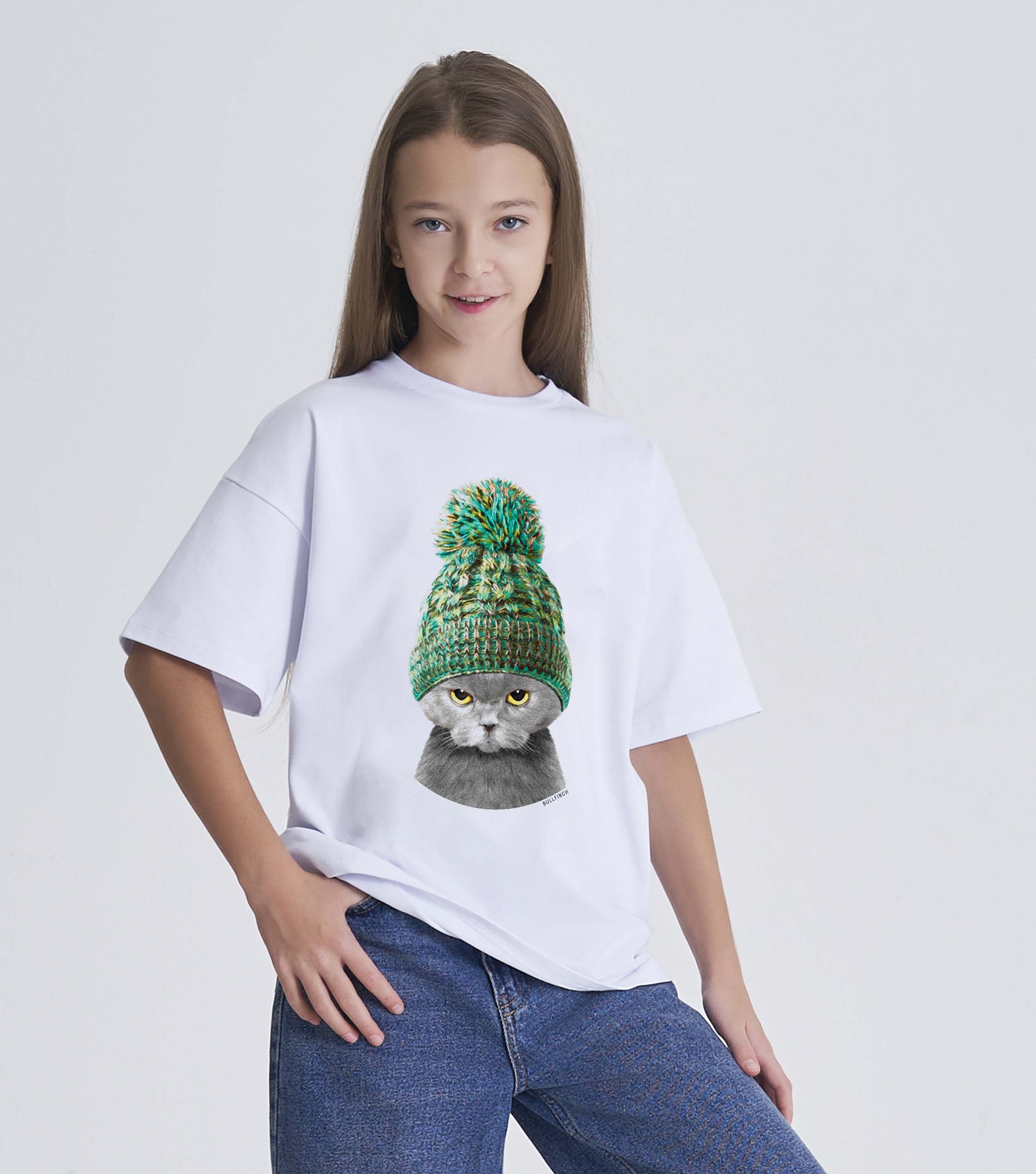 Купить детскую oversize футболку - Футболка Серьезный кот с доставкой по России в магазине Bullfinch. Размеры: Д5-6 , Д7-8 , Д9-10