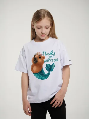 Купить детскую oversize футболку - Футболка "Капимечта" с доставкой по России в магазине Bullfinch. Размеры: Д5-6 , Д7-8