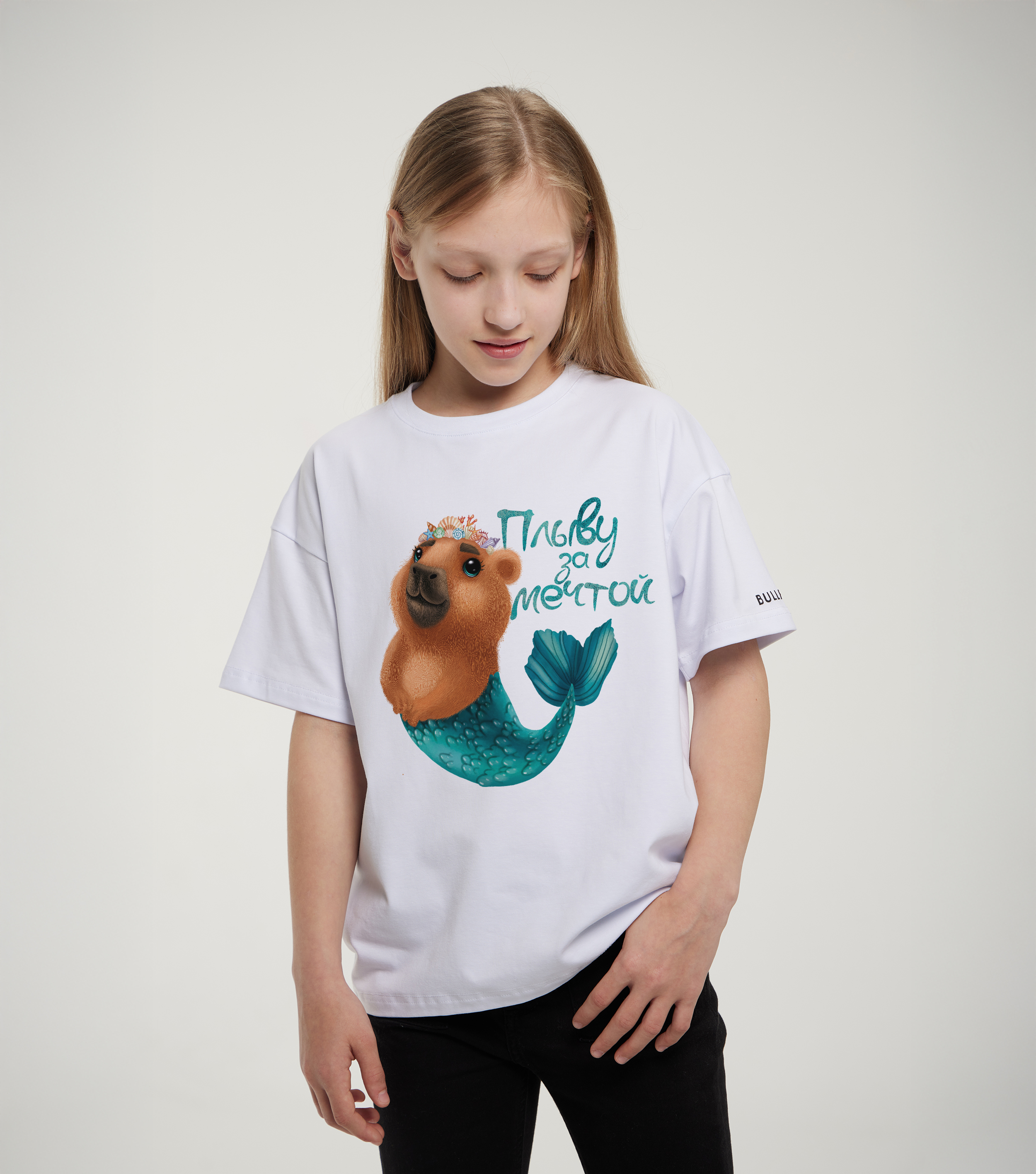 Купить детскую oversize футболку - Футболка "Капимечта" с доставкой по России в магазине Bullfinch. Размеры: Д5-6 , Д7-8 , Д9-10