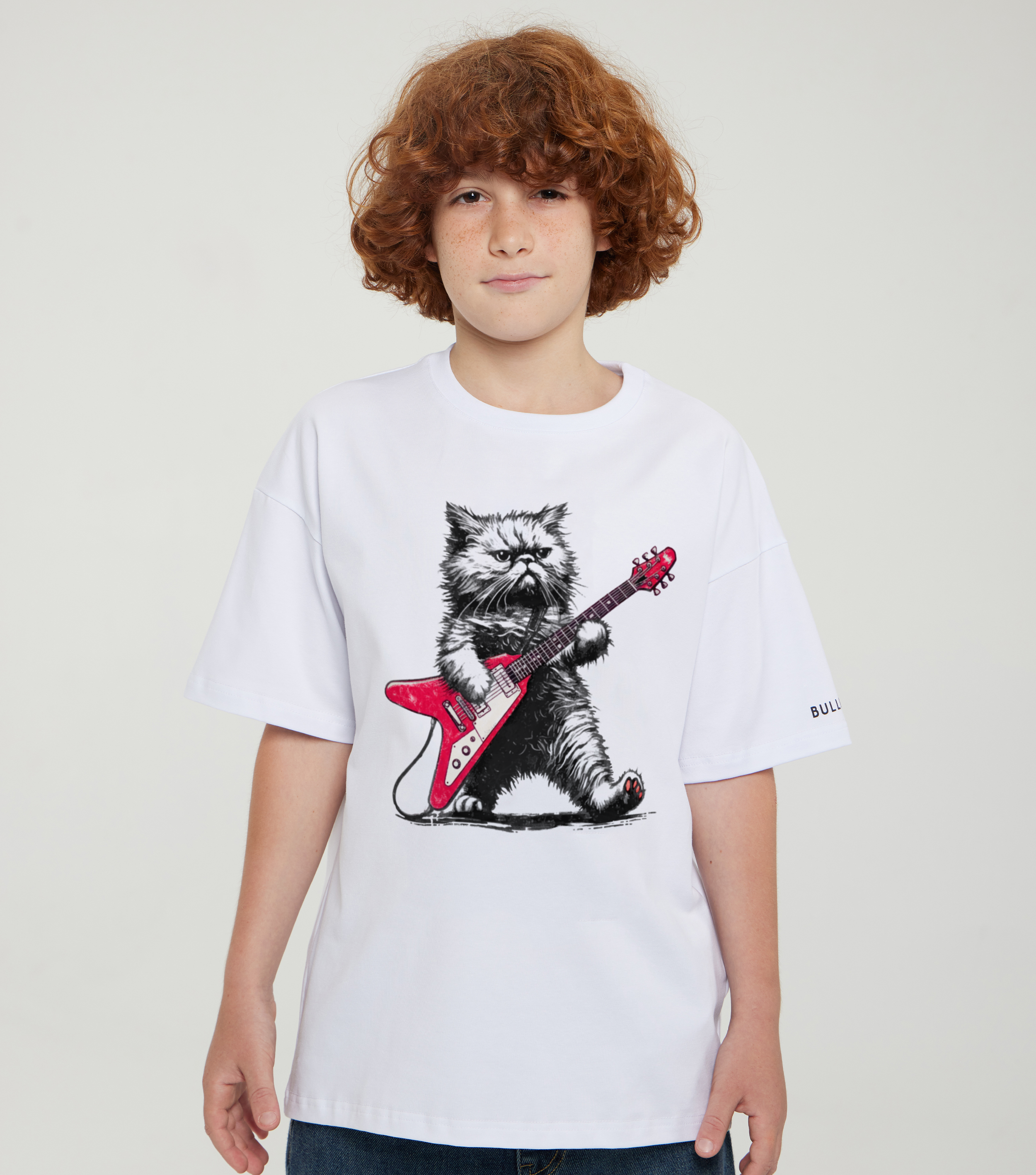 Купить детскую oversize футболку - Футболка Кот гитарист с доставкой по России в магазине Bullfinch. Размеры: Д5-6 , Д7-8 , Д9-10