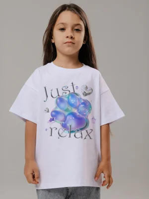 Купить детскую oversize футболку - Футболка Лапка Just Relax с доставкой по России в магазине Bullfinch. Размеры: Д5-6 , Д7-8