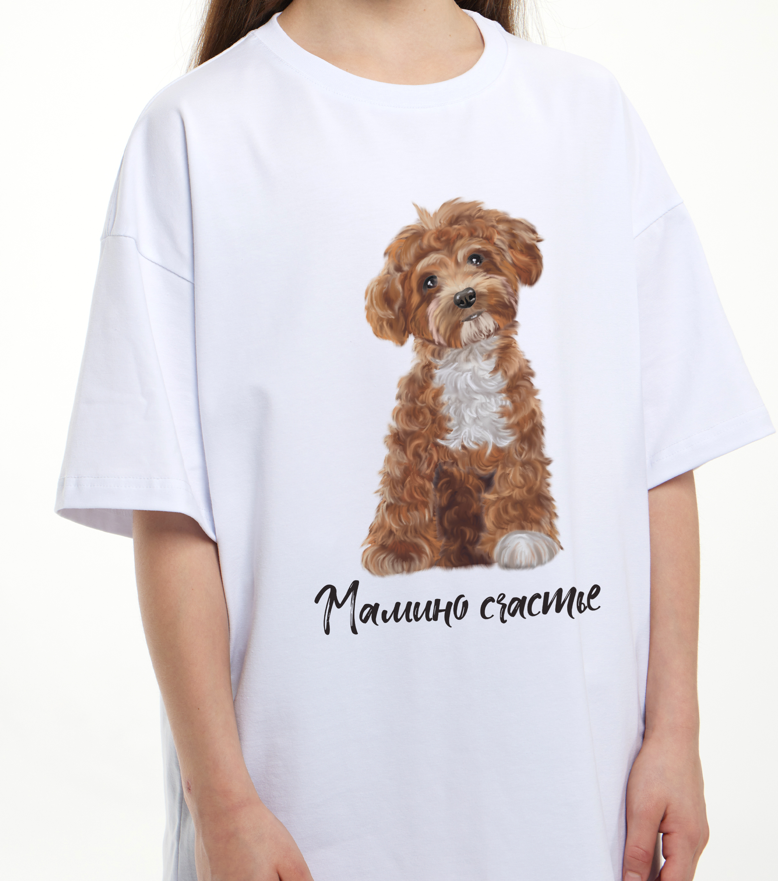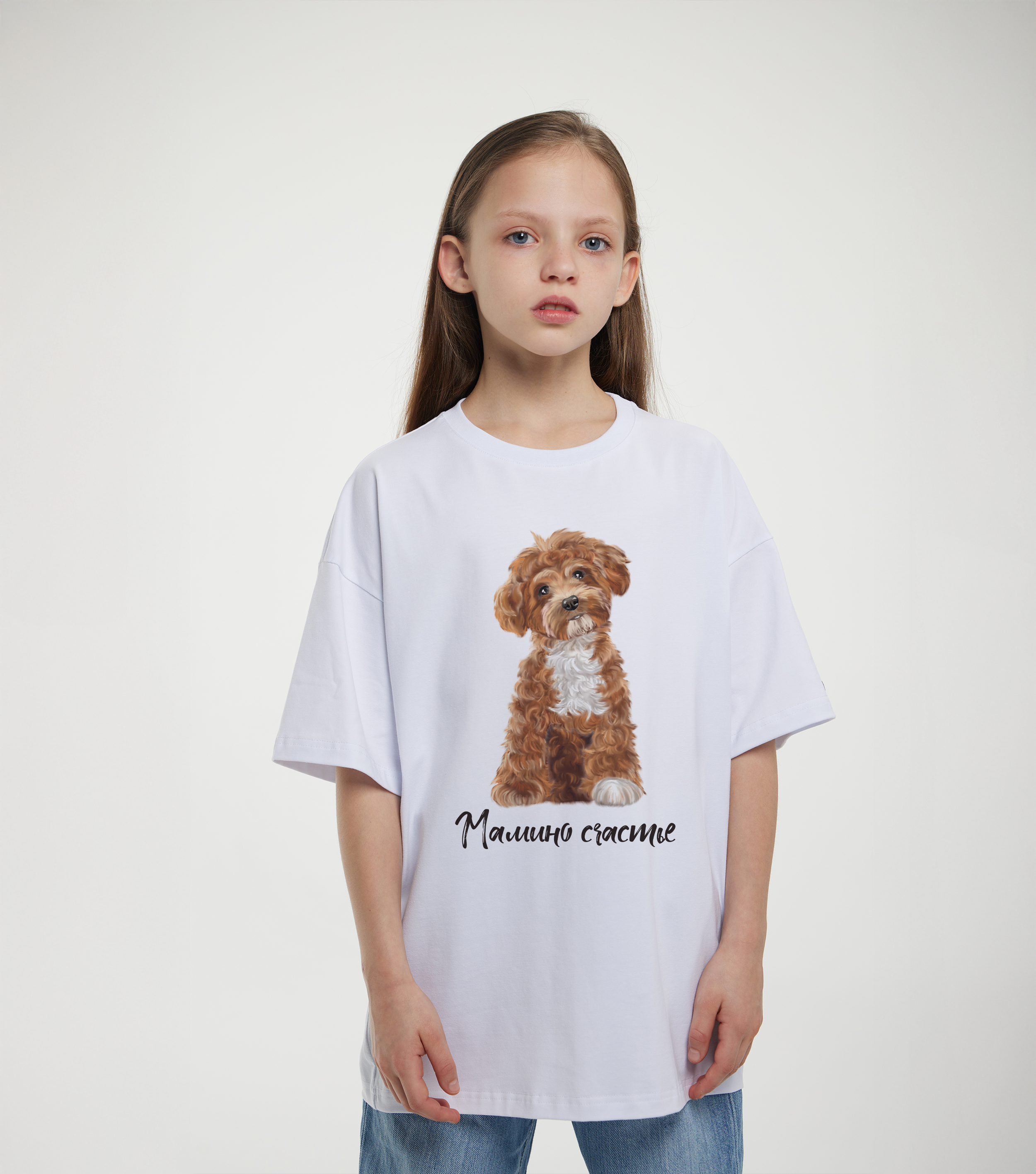 Купить детскую oversize футболку - Футболка Мальтипу "Мамино счастье" с доставкой по России в магазине Bullfinch. Размеры: Д5-6 , Д7-8 , Д9-10