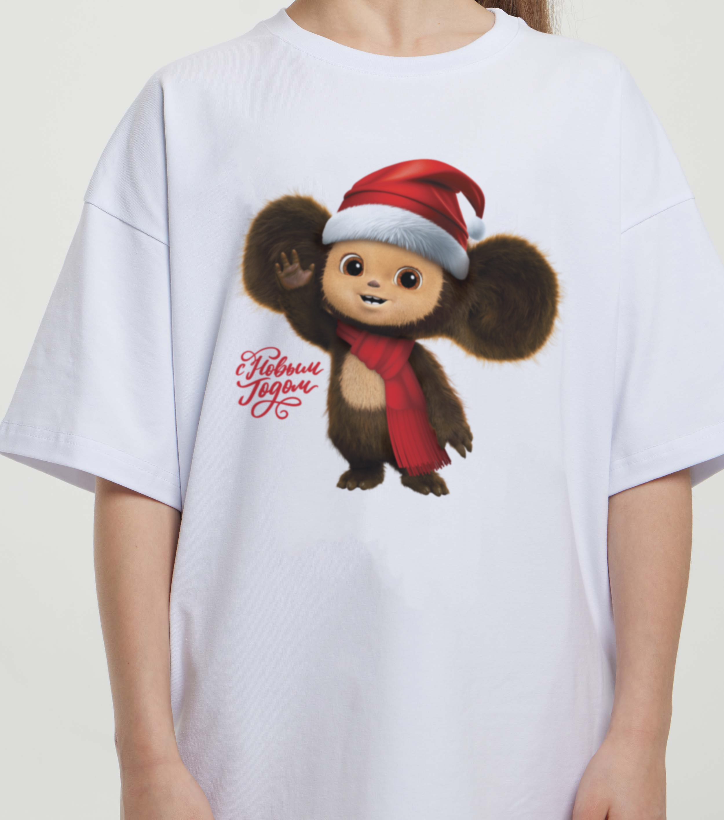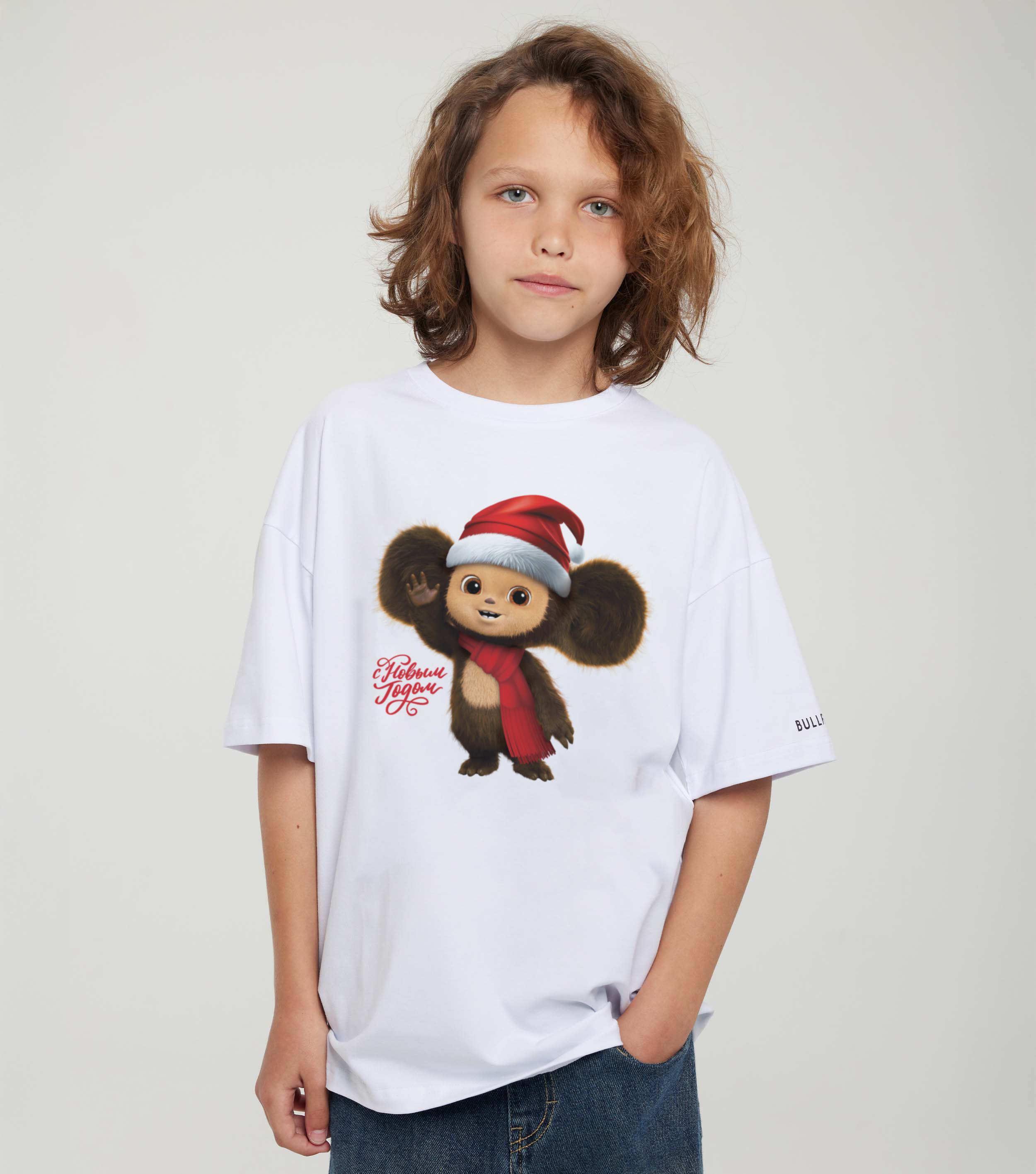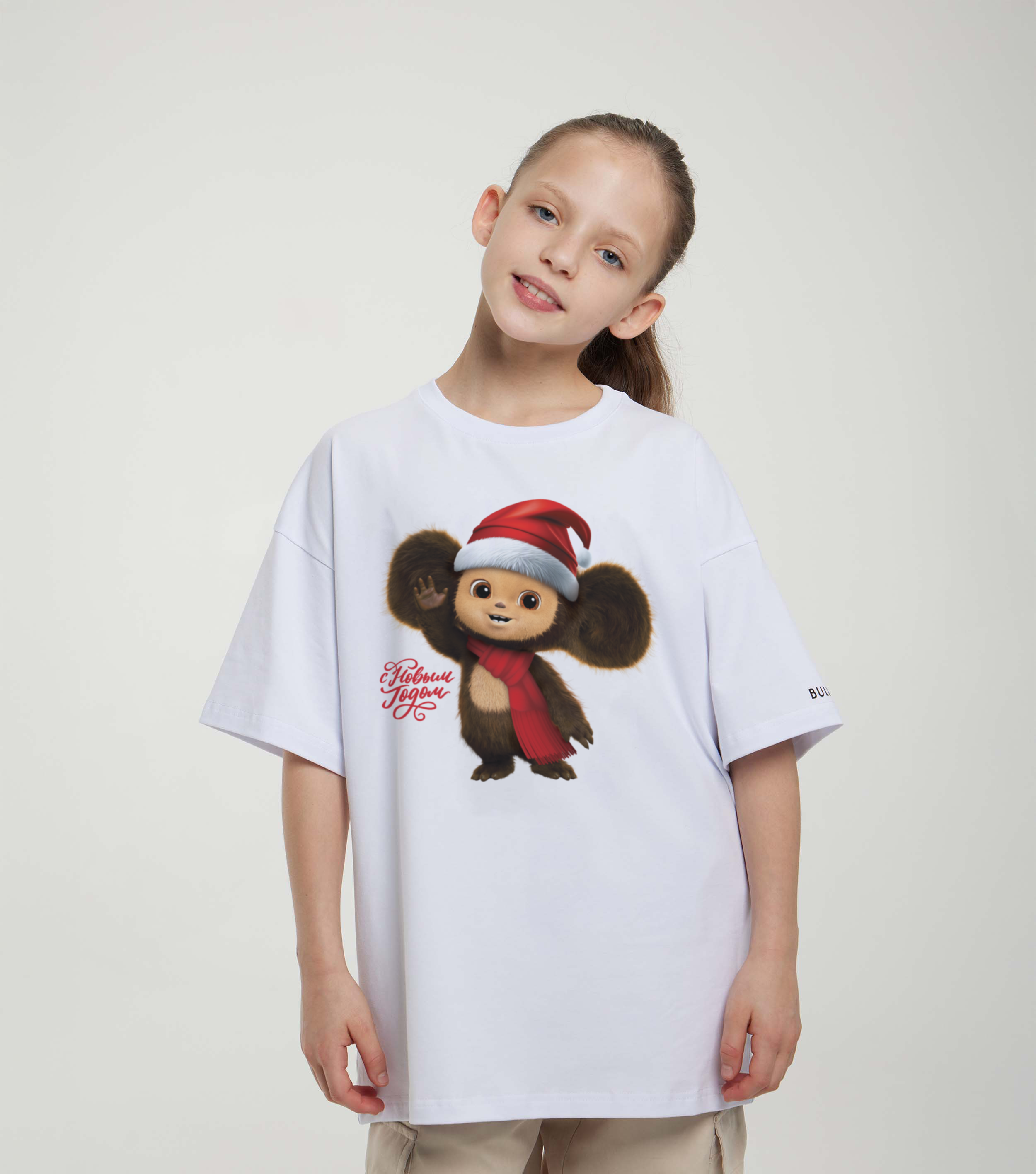 Купить детскую oversize футболку - Футболка С Новым Годом! Чебурашка с доставкой по России в магазине Bullfinch. Размеры: Д3-4 , Д5-6 , Д7-8 , Д9-10