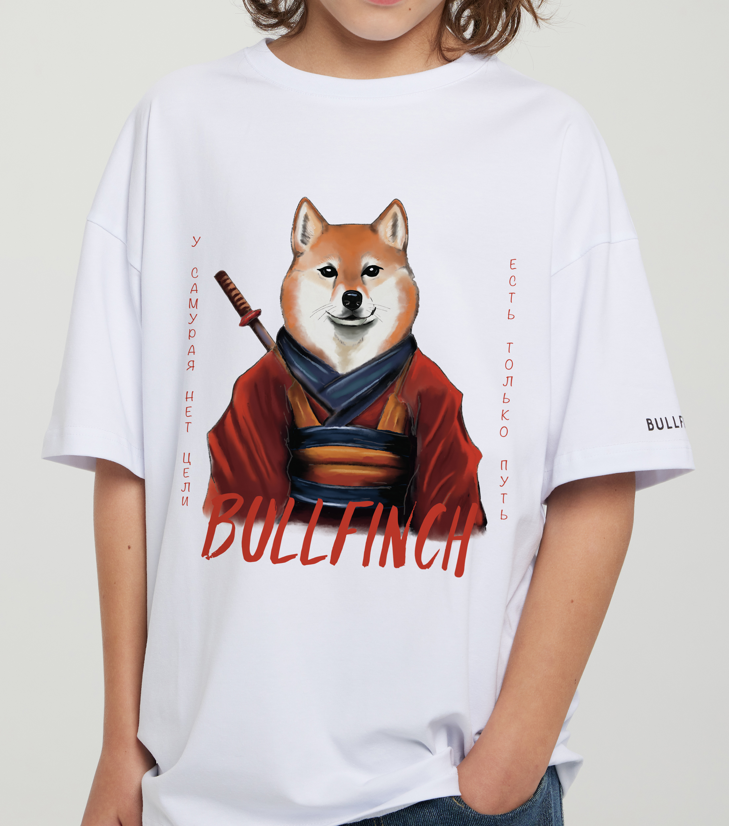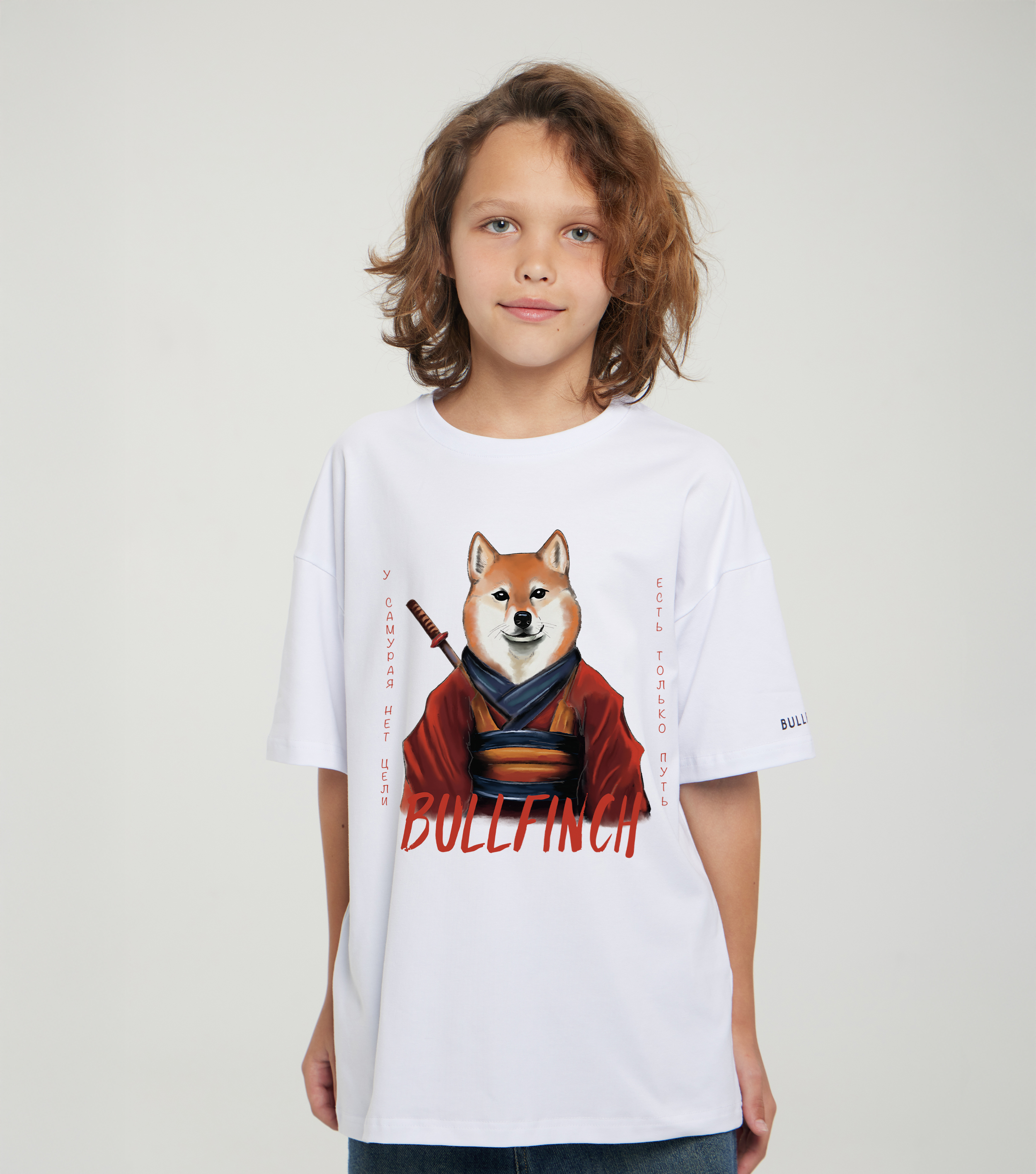 Купить детскую oversize футболку - Футболка Сиба Ину Самурай с доставкой по России в магазине Bullfinch. Размеры: Д5-6 , Д7-8 , Д9-10