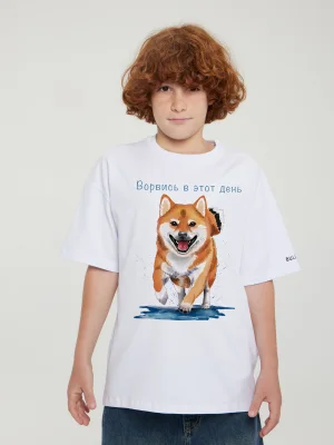 Купить детскую oversize футболку - Футболка Сиба-Ину "Ворвись в этот день" с доставкой по России в магазине Bullfinch. Размеры: Д5-6 , Д7-8