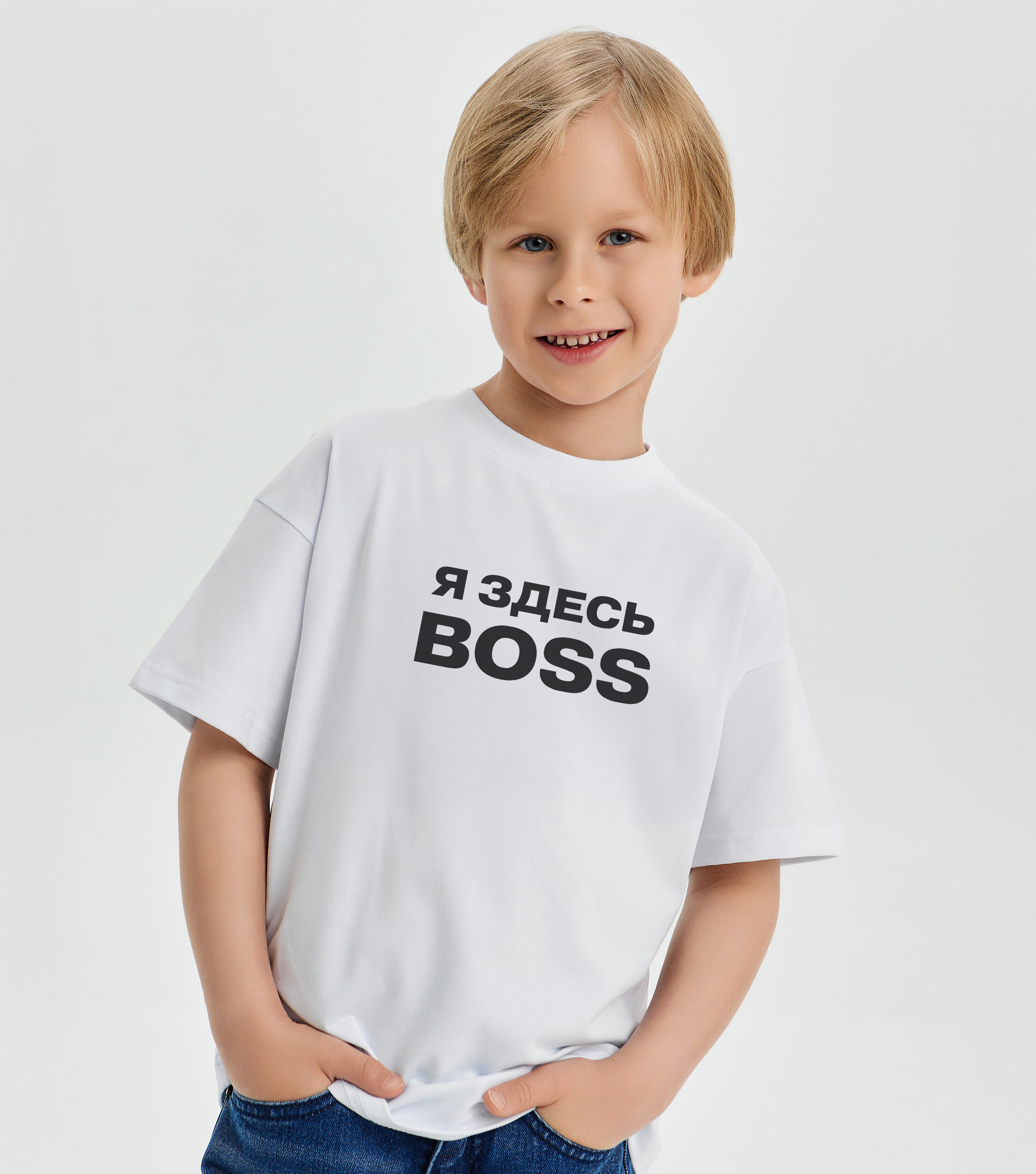 Купить детскую oversize футболку - Футболка "Я здесь BOSS" с доставкой по России в магазине Bullfinch. Размеры: Д5-6 , Д7-8 , Д9-10
