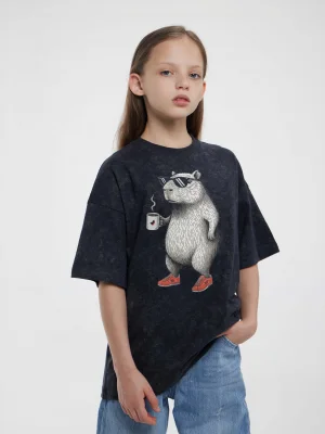 Купить детскую oversize футболку - Футболка Капибара в кедах с доставкой по России в магазине Bullfinch. Размеры: Д3-4 , Д5-6 , Д7-8 , Д9-10