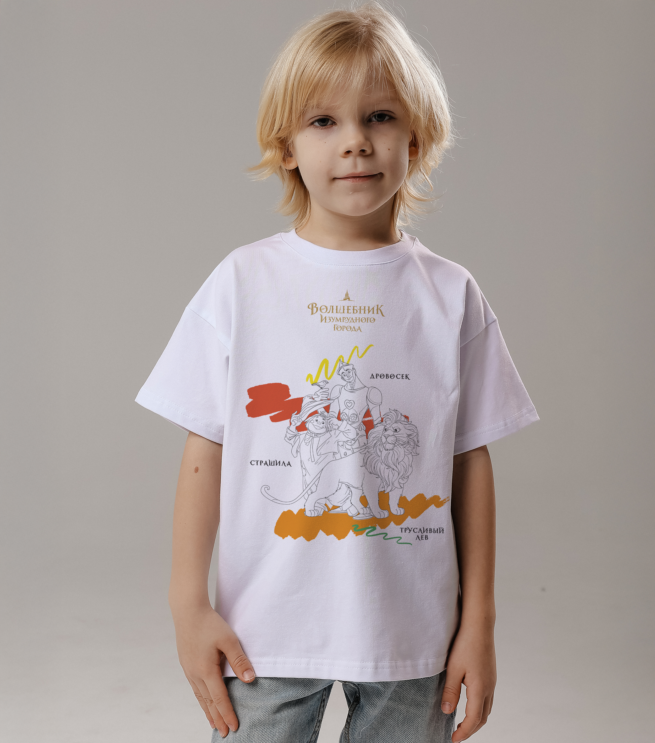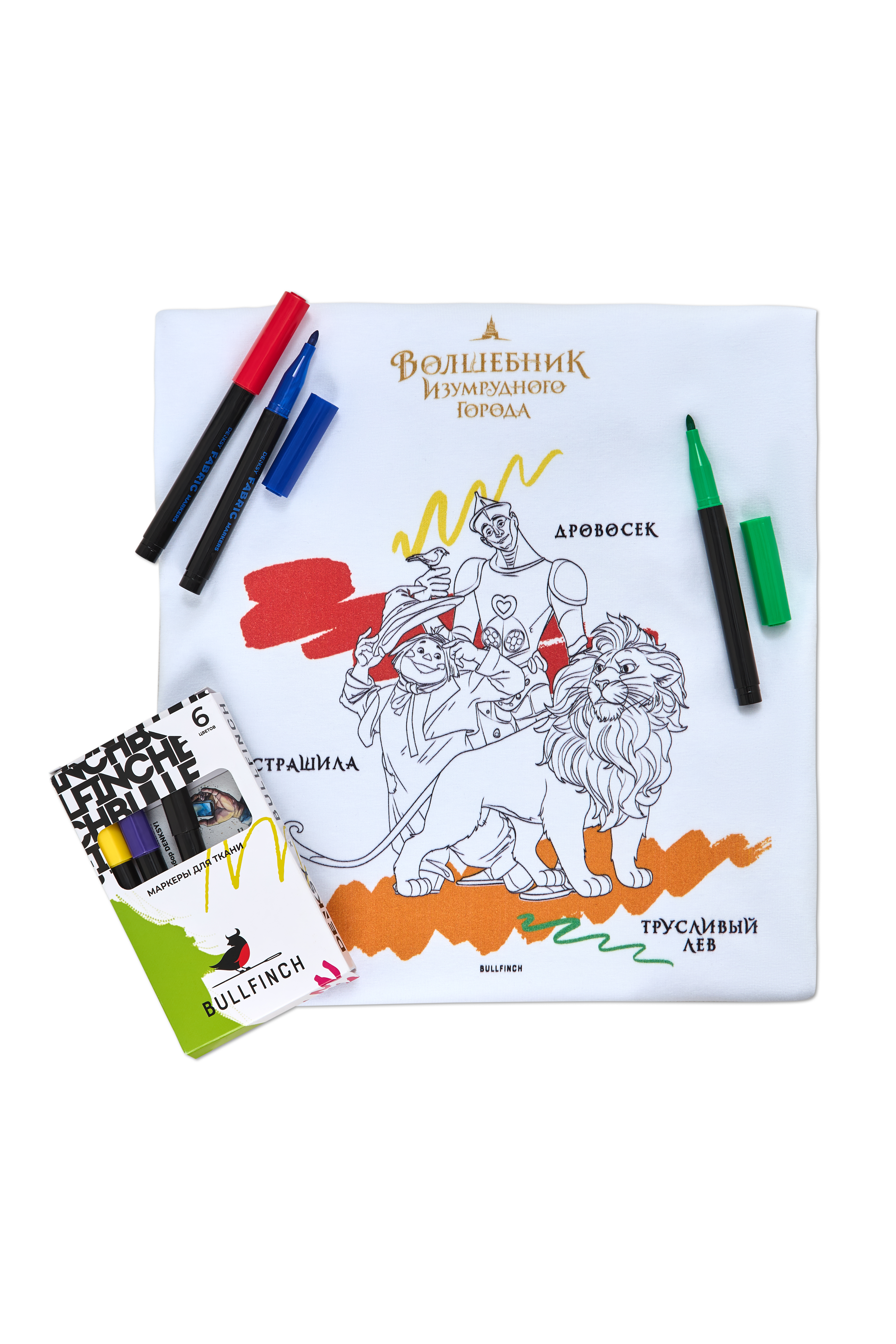 Футболка-раскраска Друзья. Волшебник Изумрудного Города - Купить с доставкой по России в магазине Bullfinch. Футболки-раскраски, Детская одежда. Гипоаллергенные краски. Премиальное качество. Размеры: Д5-6, Д7-8, Д9-10