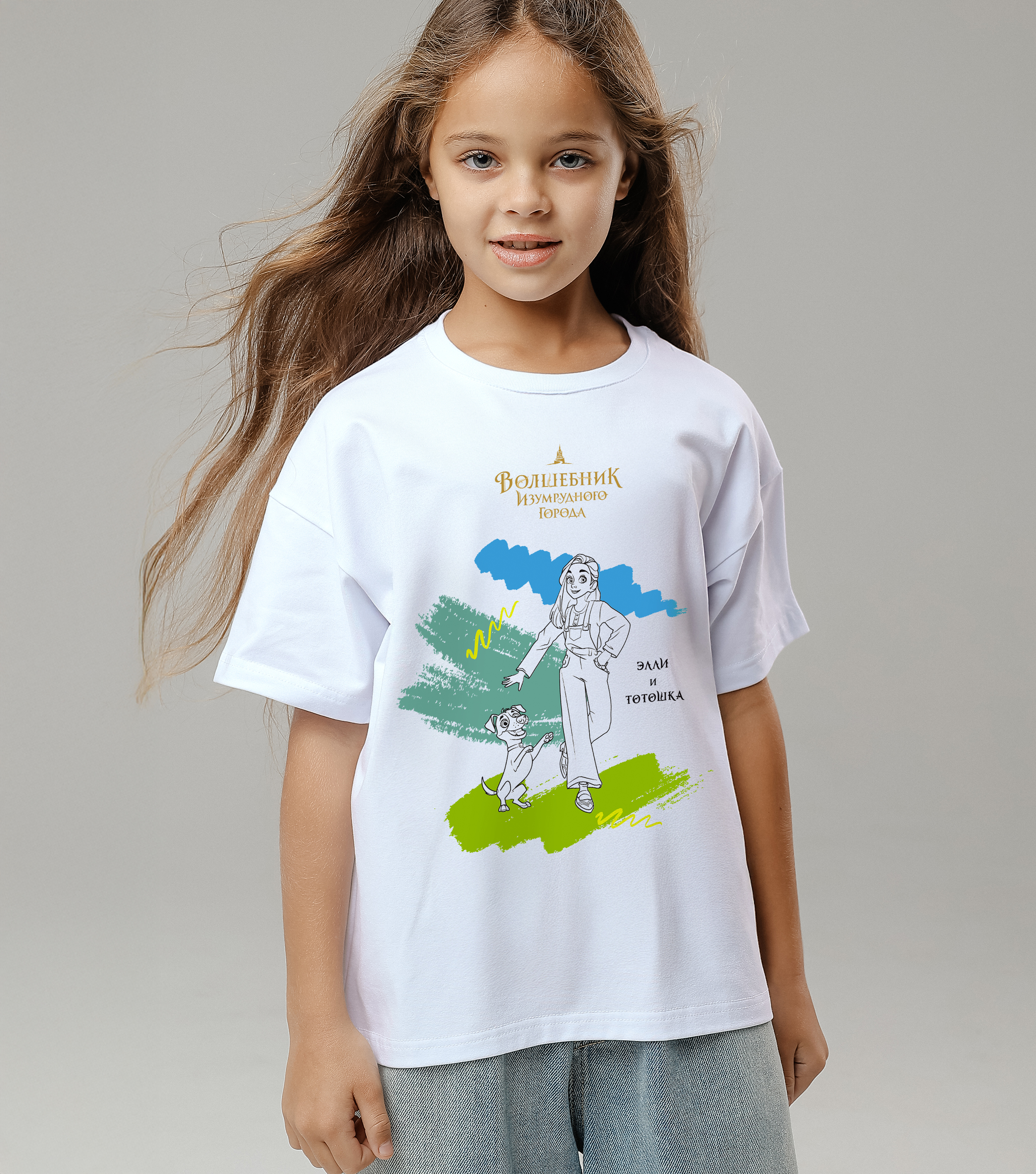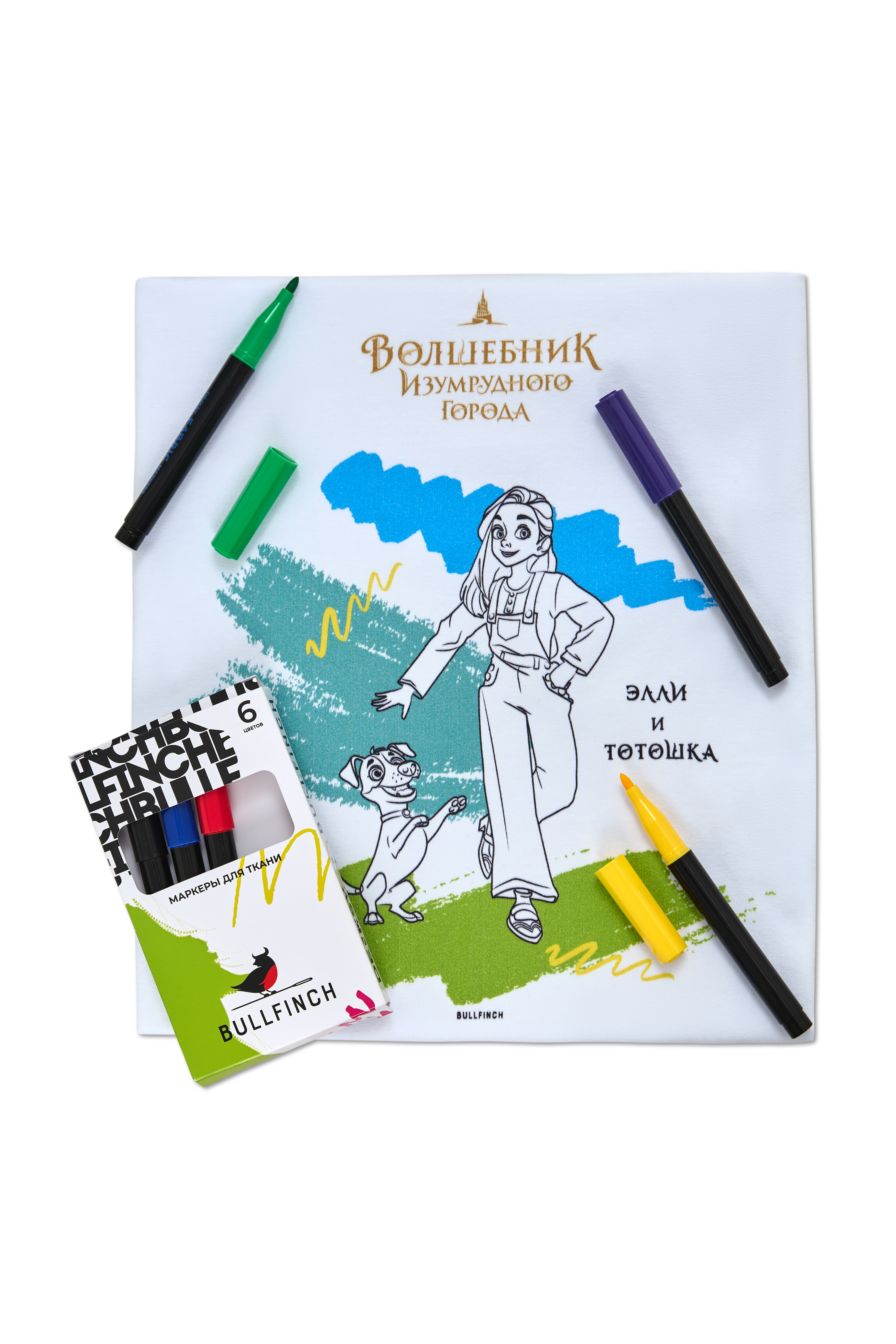 Футболка-раскраска Элли и Тотошка. Волшебник Изумрудного Города - Купить с доставкой по России в магазине Bullfinch. Футболки-раскраски, Детская одежда. Гипоаллергенные краски. Премиальное качество. Размеры: Д5-6, Д7-8, Д9-10