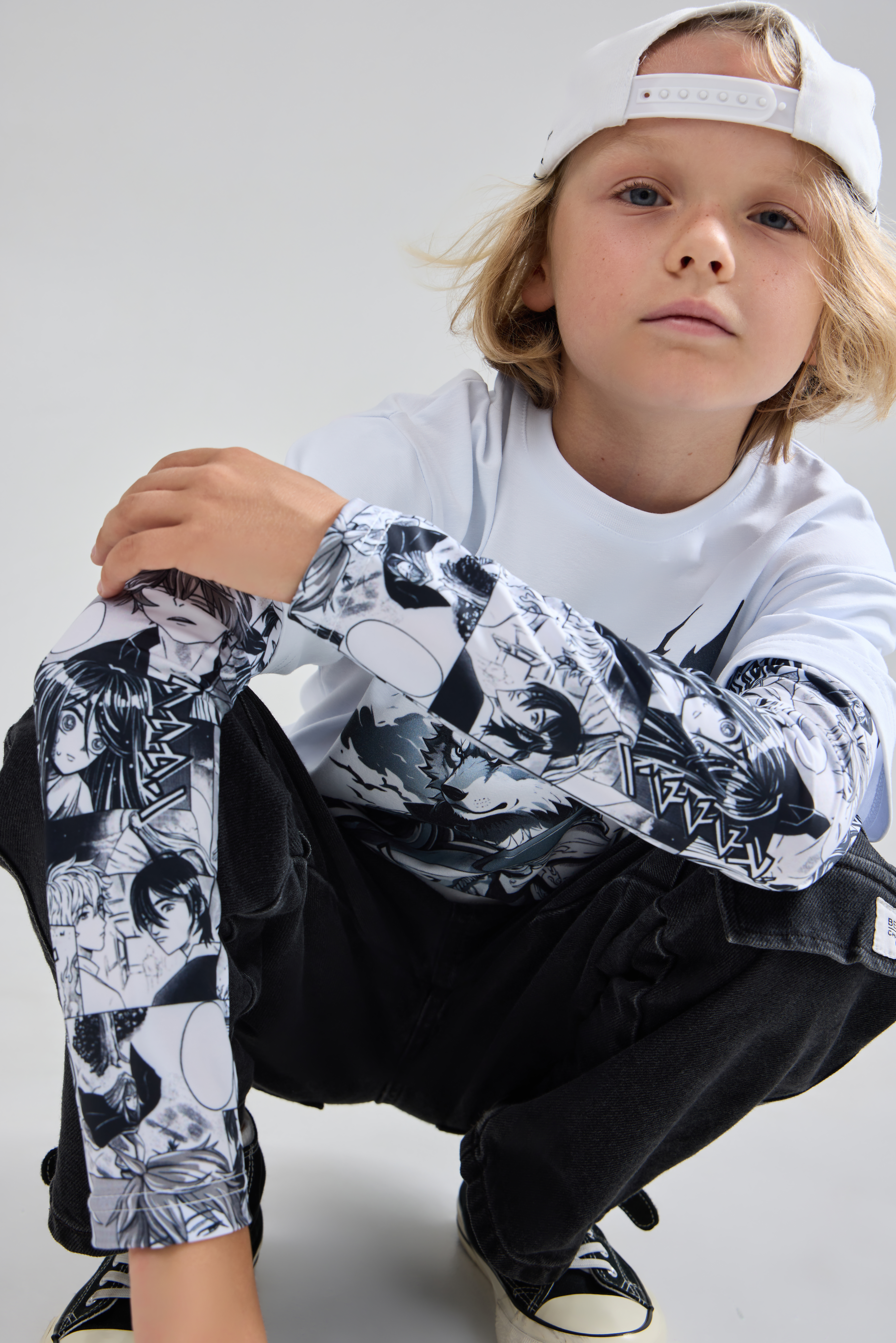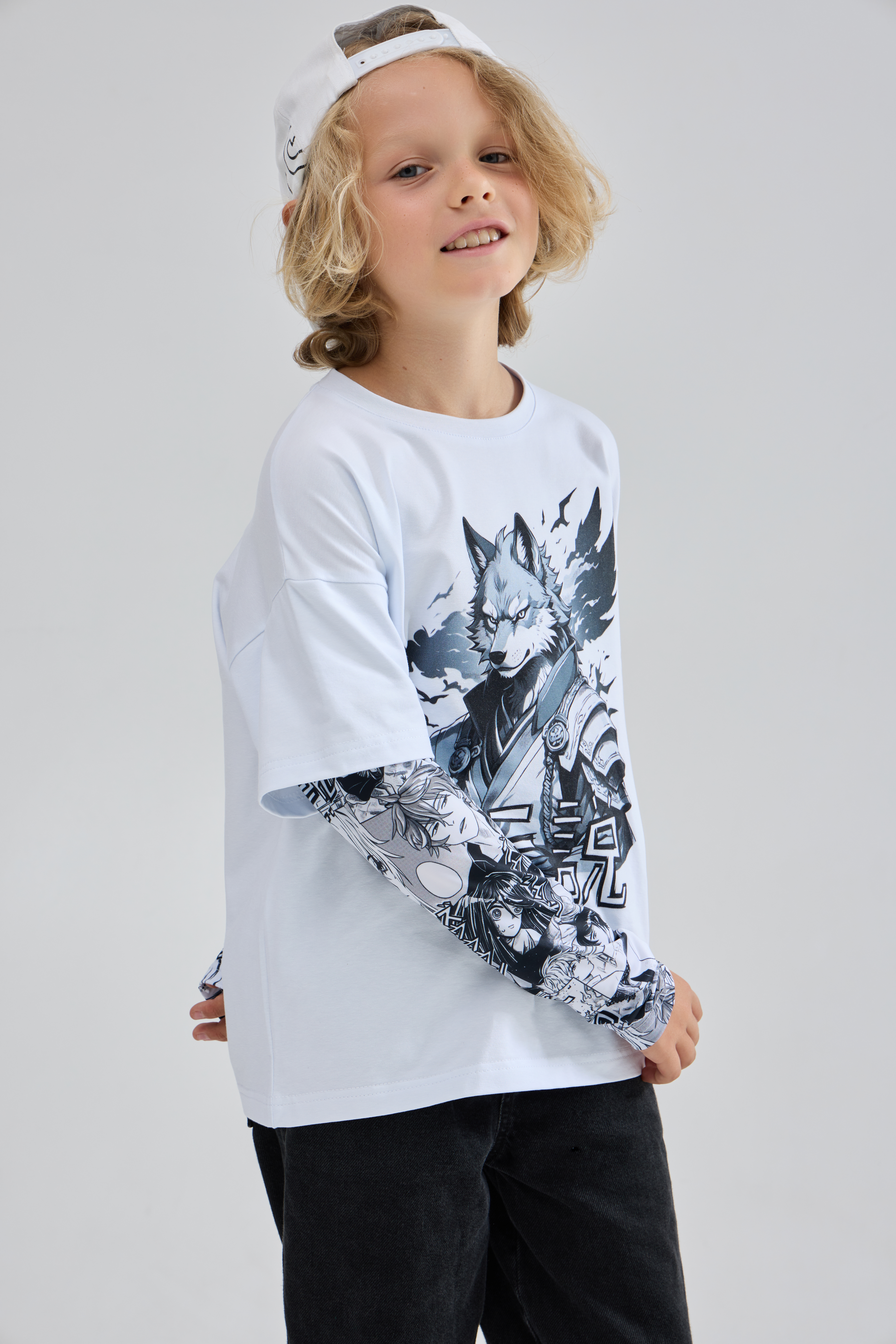 Лонгслив Волк рукав Manga - Купить с доставкой по России в магазине Bullfinch. Лонгсливы оверсайз, Детская одежда. Гипоаллергенные краски. Премиальное качество. Размеры: Д5-6, Д7-8, Д9-10