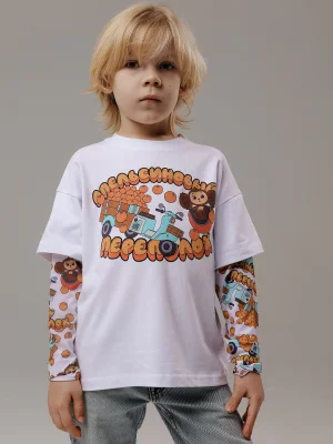 Лонгслив Апельсиновый переполох - Купить с доставкой по России в магазине Bullfinch. Лонгсливы оверсайз, Детская одежда. Гипоаллергенные краски. Премиальное качество. Размеры: Д3-4, Д5-6, Д7-8