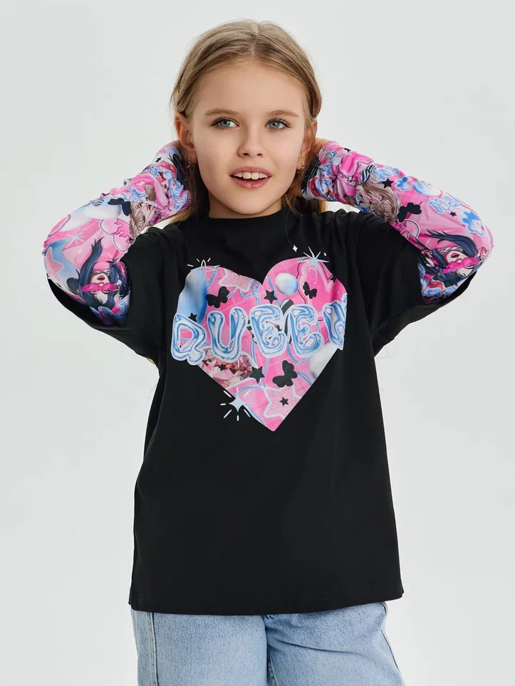 Лонгслив K-pop Queen рукав K-pop - Купить с доставкой по России в магазине Bullfinch. Лонгсливы оверсайз, Детская одежда. Гипоаллергенные краски. Премиальное качество. Размеры: Д5-6, Д7-8
