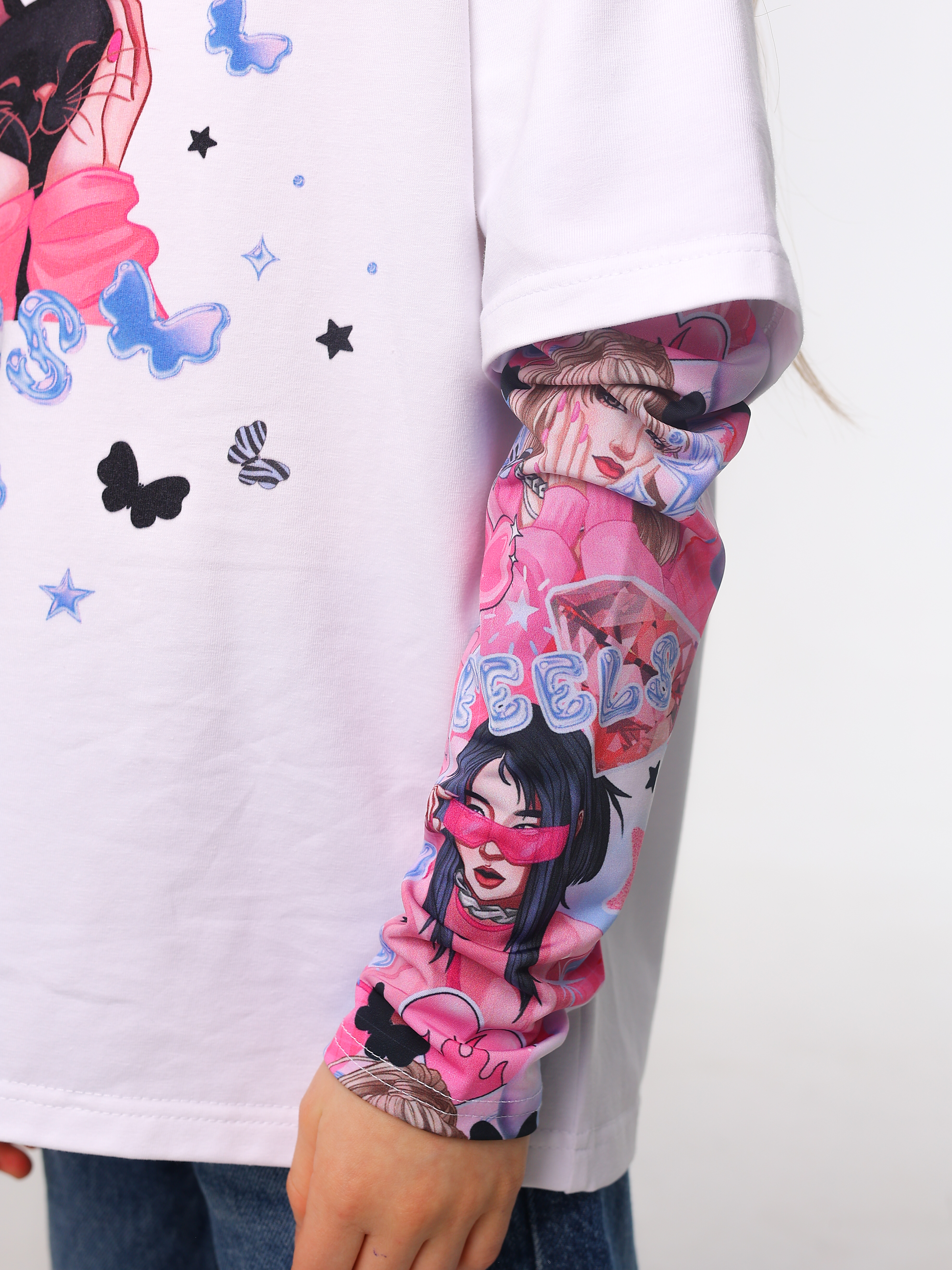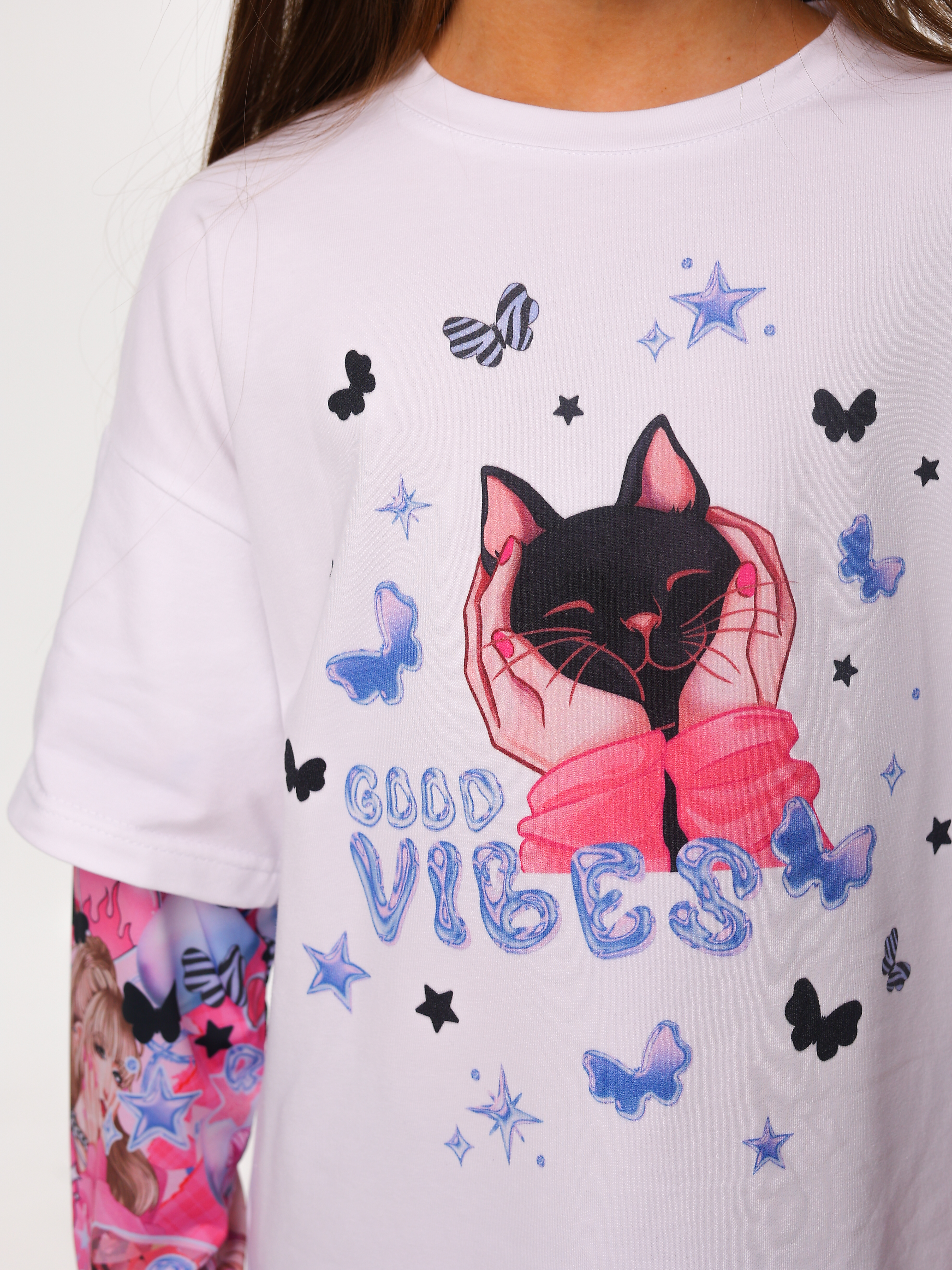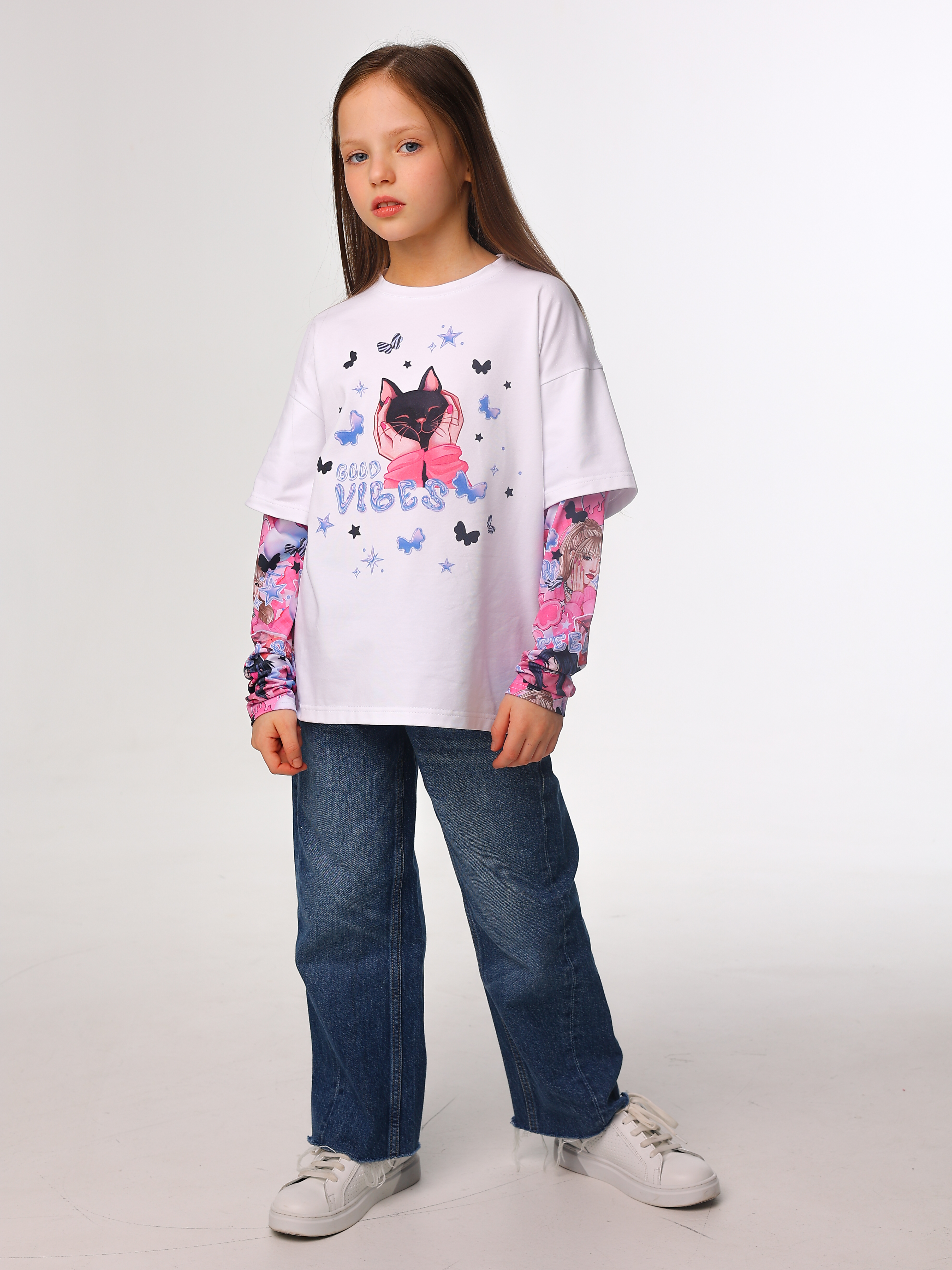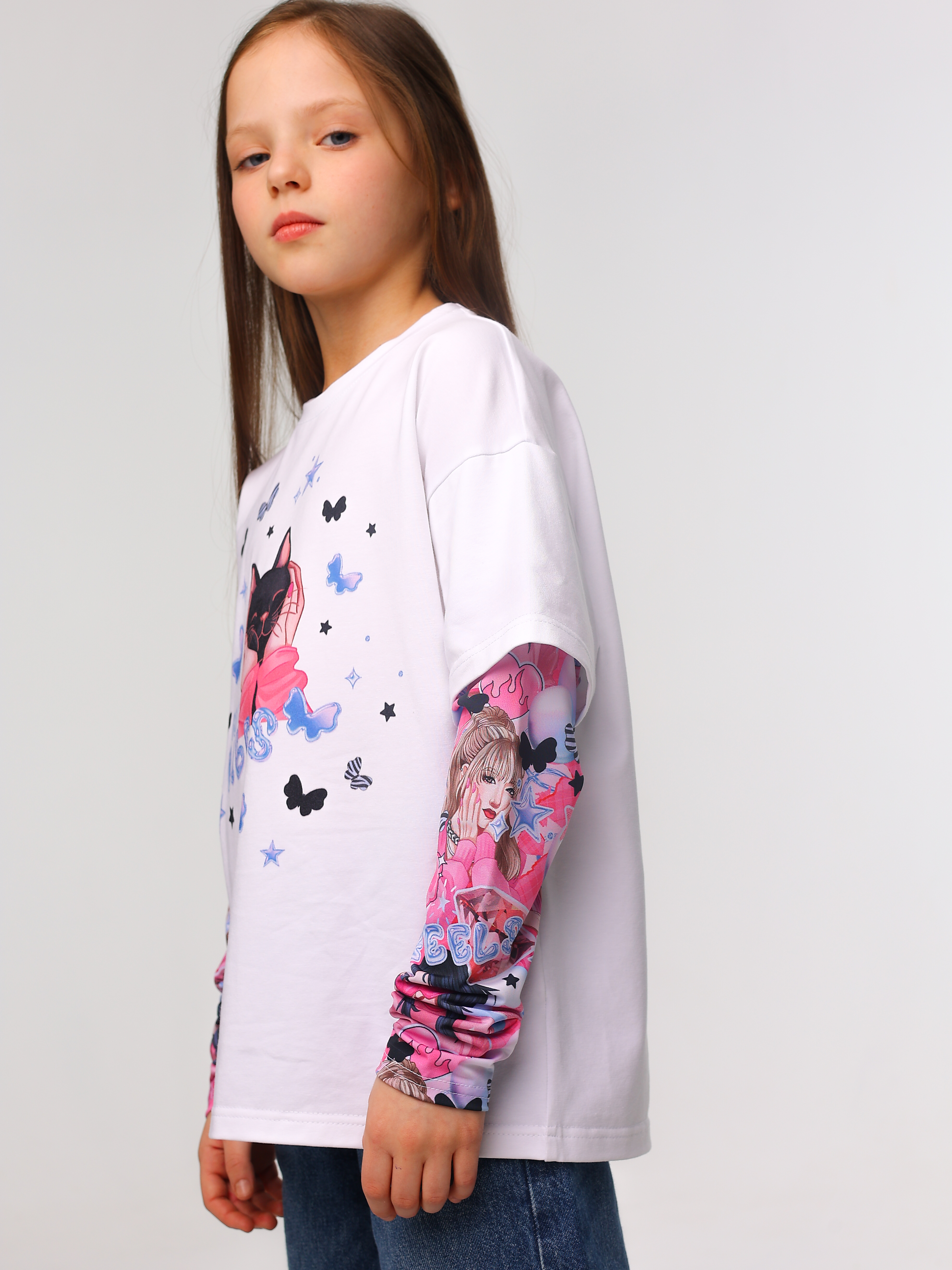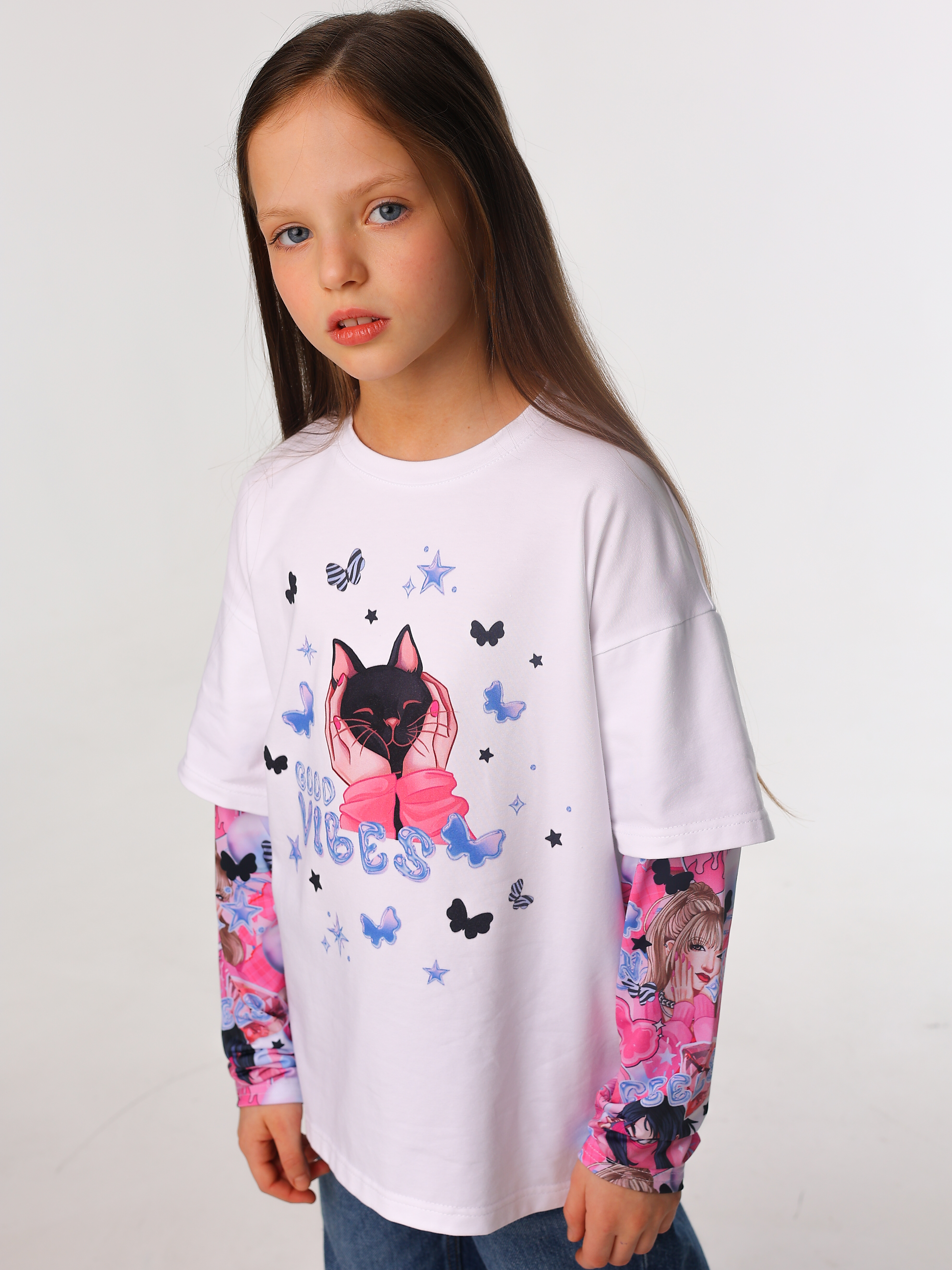 Лонгслив K-pop Cat - Купить с доставкой по России в магазине Bullfinch. Лонгсливы оверсайз, Детская одежда. Гипоаллергенные краски. Премиальное качество. Размеры: Д5-6, Д7-8, Д9-10, Д12-13