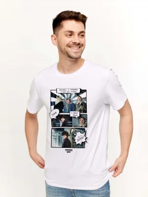 Футболка "Девушка, как вас зовут?" Мосфильм - Купить с доставкой по России в магазине Bullfinch. Прямые футболки, Мужская одежда. Гипоаллергенные краски. Премиальное качество. Размеры: XS