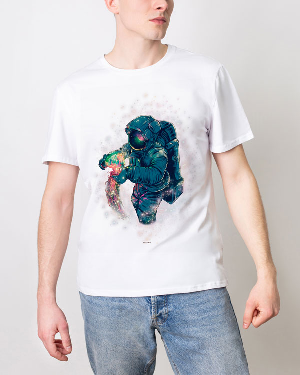 Футболка Космонавт с медузой - Купить с доставкой по России в магазине Bullfinch. Прямые футболки, Мужская одежда. Гипоаллергенные краски. Премиальное качество. Размеры: XS