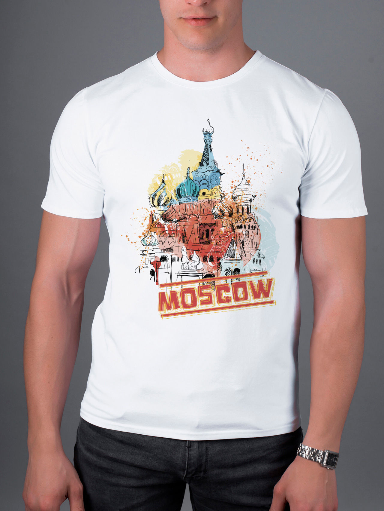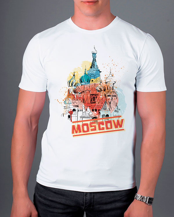 Футболка Красочная Москва - Купить с доставкой по России в магазине Bullfinch. Прямые футболки, Мужская одежда. Гипоаллергенные краски. Премиальное качество. Размеры: S, XXL, XXXL