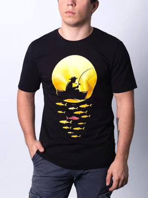 Футболка Лунный рыбак - Купить с доставкой по России в магазине Bullfinch. Прямые футболки, Мужская одежда. Гипоаллергенные краски. Премиальное качество. Размеры: XS, S, L