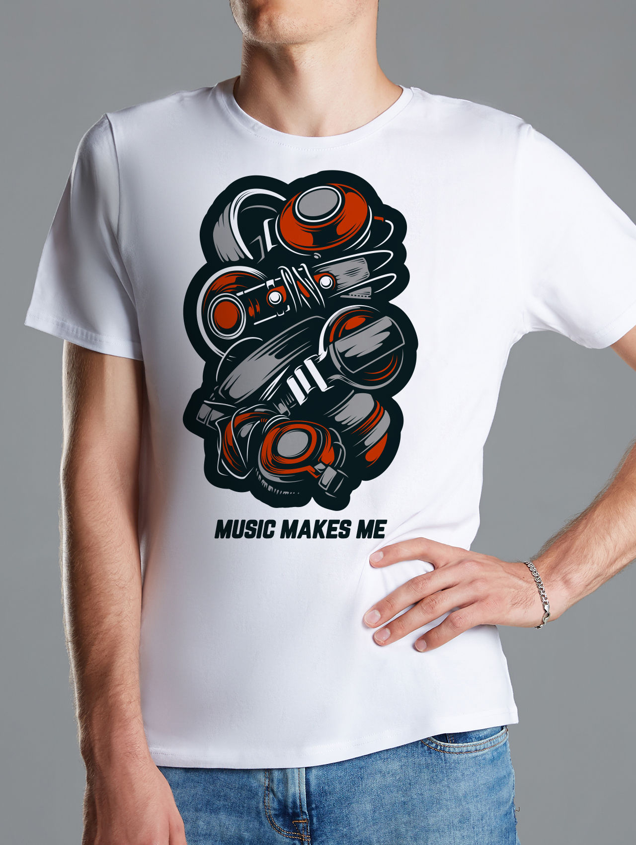 Футболка MUSIC MAKES ME.черный - Купить с доставкой по России в магазине Bullfinch. Прямые футболки, Мужская одежда. Гипоаллергенные краски. Премиальное качество. Размеры: S, XXL, XXXL
