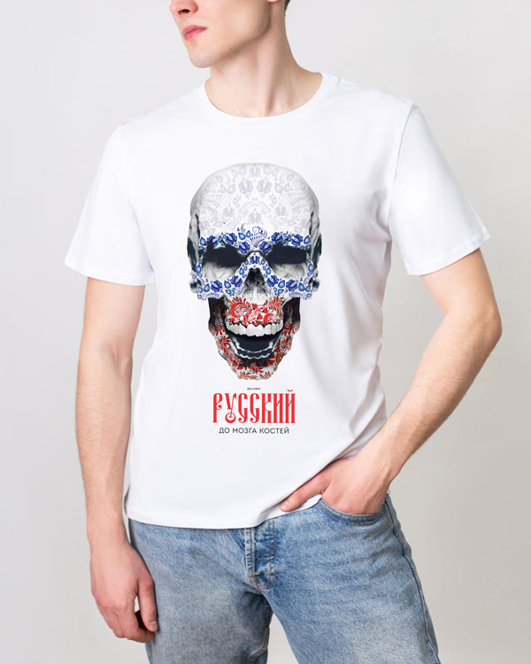 Футболка Русский до мозга костей - Купить с доставкой по России в магазине Bullfinch. Прямые футболки, Мужская одежда. Гипоаллергенные краски. Премиальное качество. Размеры: S, XXL, XXXL, XS