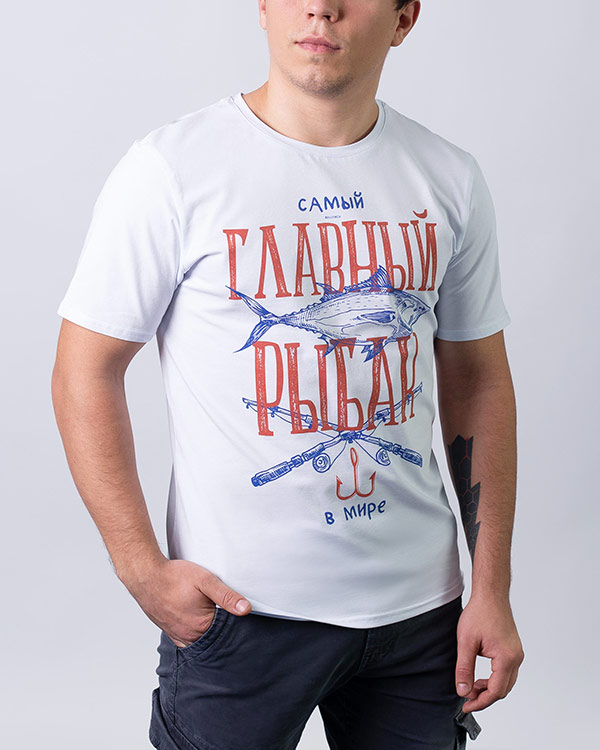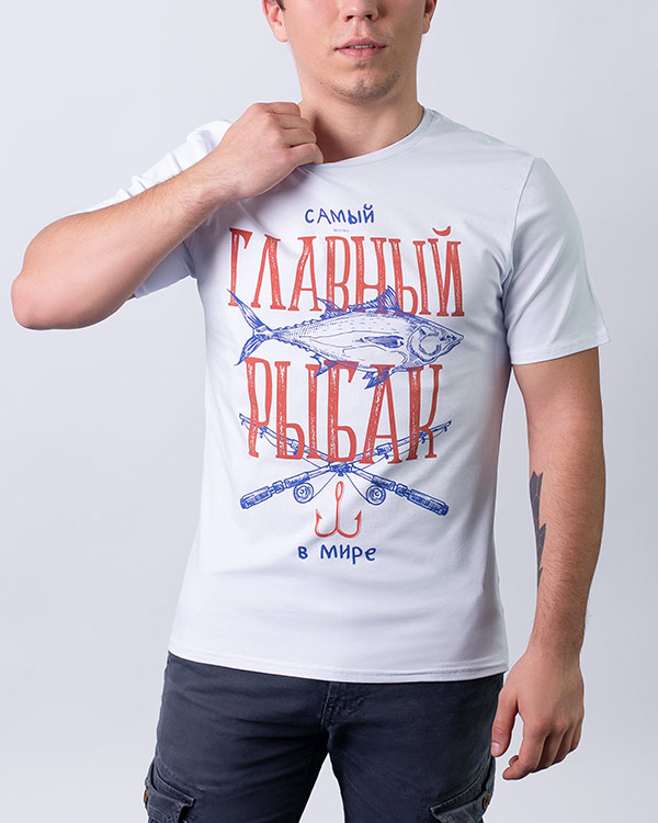 Футболка Самый главный рыбак - Купить с доставкой по России в магазине Bullfinch. Прямые футболки, Мужская одежда. Гипоаллергенные краски. Премиальное качество. Размеры: S, XXL, XXXL, XS