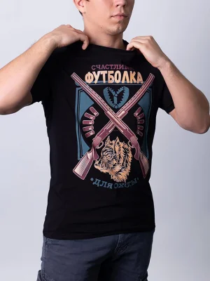Каждому охотнику нужна своя счастливая футболка. Мы подготовили такую футболку с счастливым принтом, заряженным на большую добычу. Отличный вариант подарка для охотника. Вариант представлен только на черной футболке.