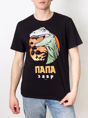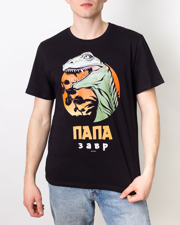 Футболка Папа Завр - Купить с доставкой по России в магазине Bullfinch. Прямые футболки, Мужская одежда. Гипоаллергенные краски. Премиальное качество. Размеры: XS, S, M