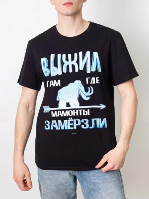 Футболка Выжил там где мамонты - Купить с доставкой по России в магазине Bullfinch. Прямые футболки, Мужская одежда. Гипоаллергенные краски. Премиальное качество. Размеры: XS, S