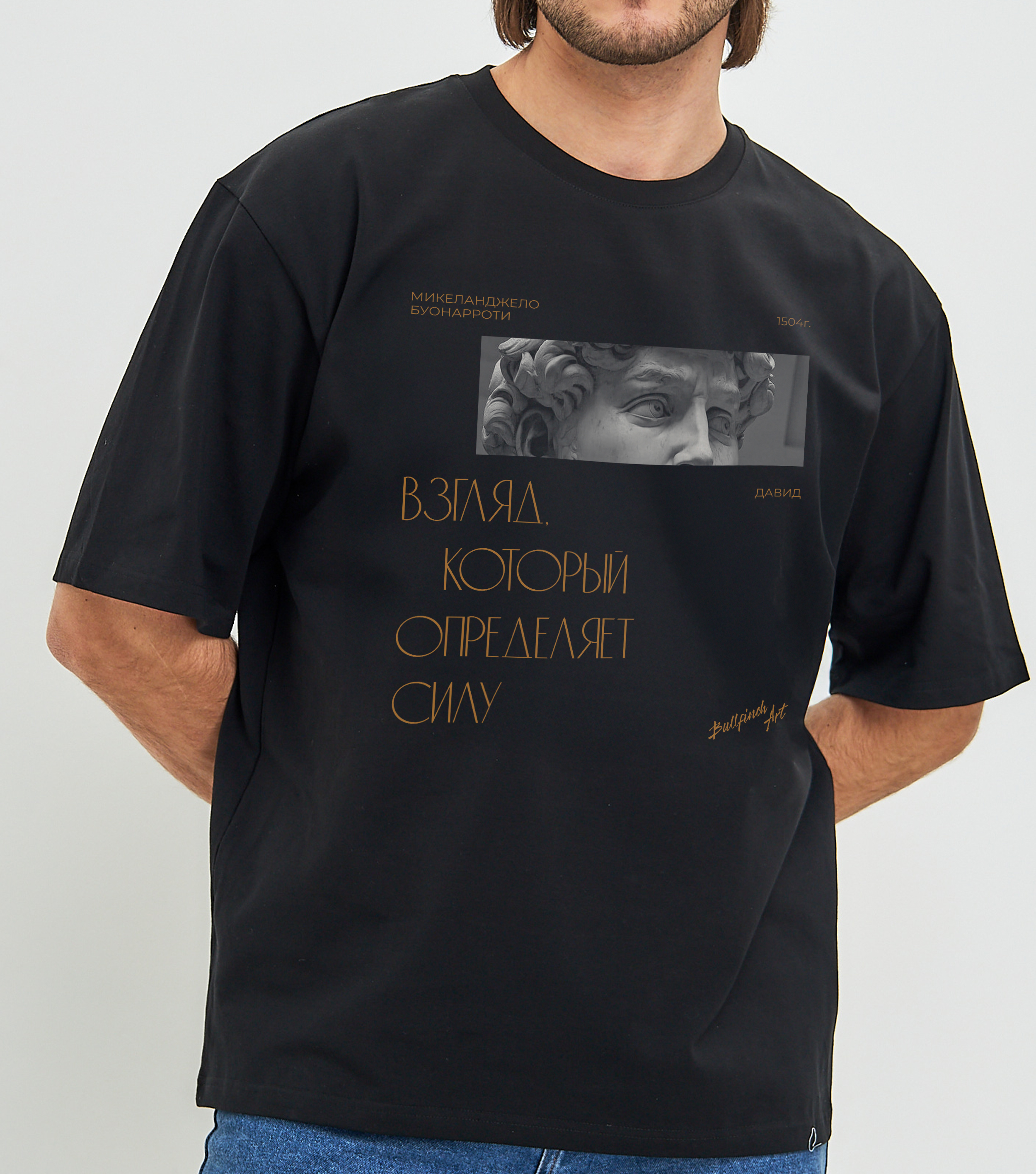 Футболка Давид - Купить с доставкой по России в магазине Bullfinch. Уни оверсайз, Мужская одежда. Гипоаллергенные краски. Премиальное качество. Размеры: S
