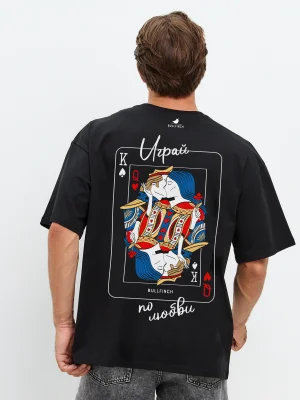 Футболка Карта "Играй по любви" - Купить с доставкой по России в магазине Bullfinch. Уни оверсайз, Мужская одежда. Гипоаллергенные краски. Премиальное качество. Размеры: S