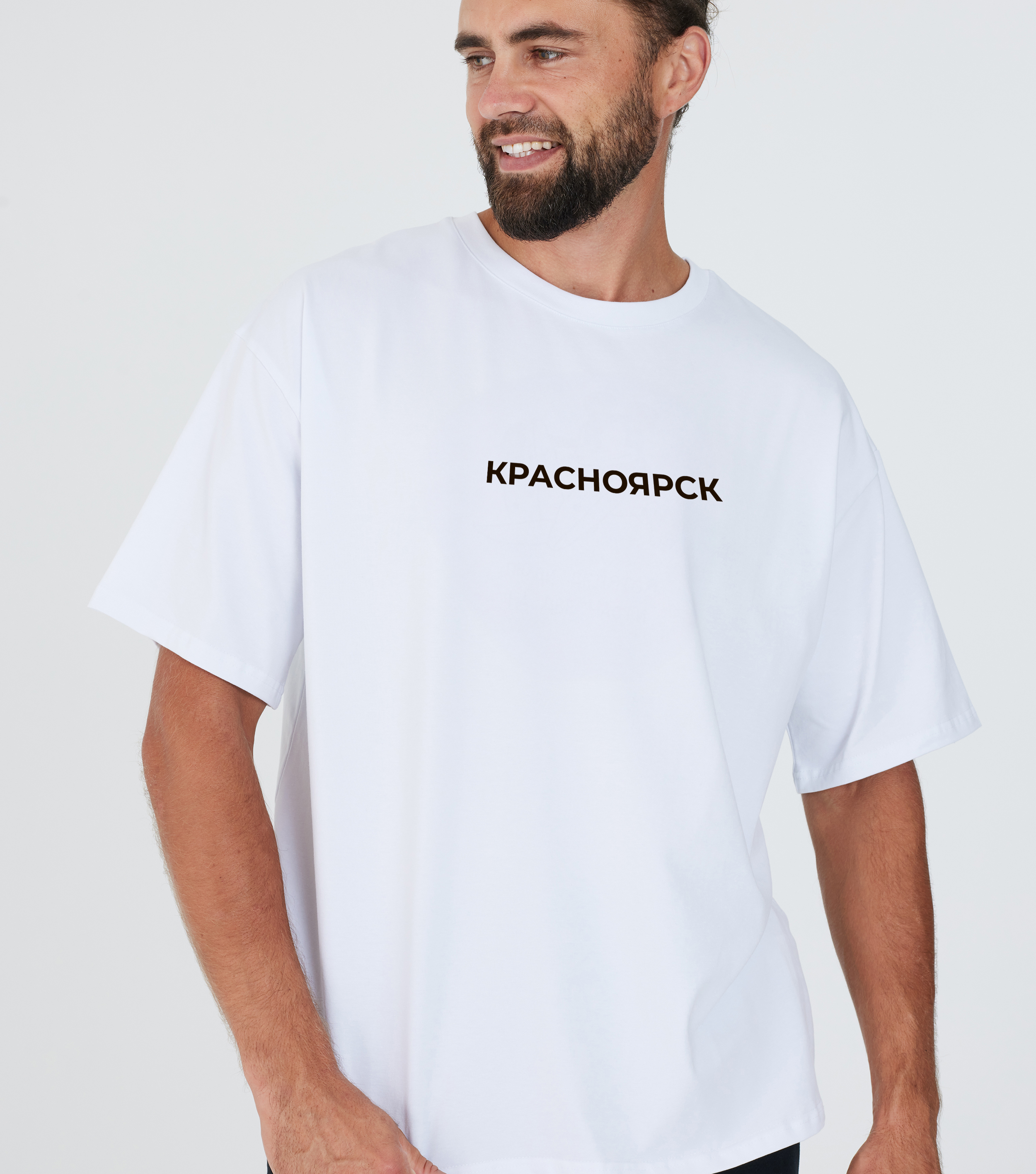 Футболка Красноярск - Купить с доставкой по России в магазине Bullfinch. Уни оверсайз, Мужская одежда. Гипоаллергенные краски. Премиальное качество. Размеры: XS, S, M, L, XL, XXL