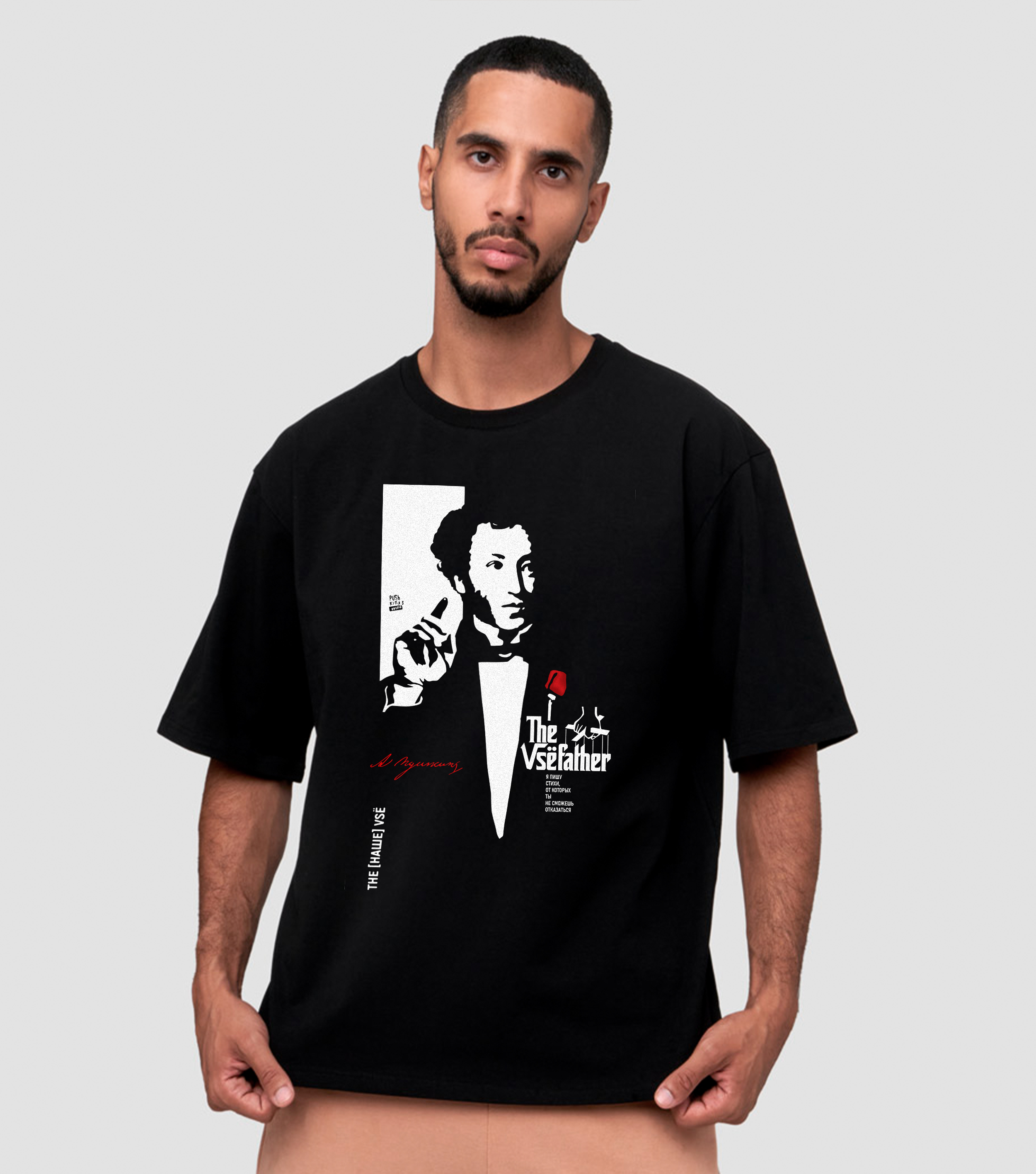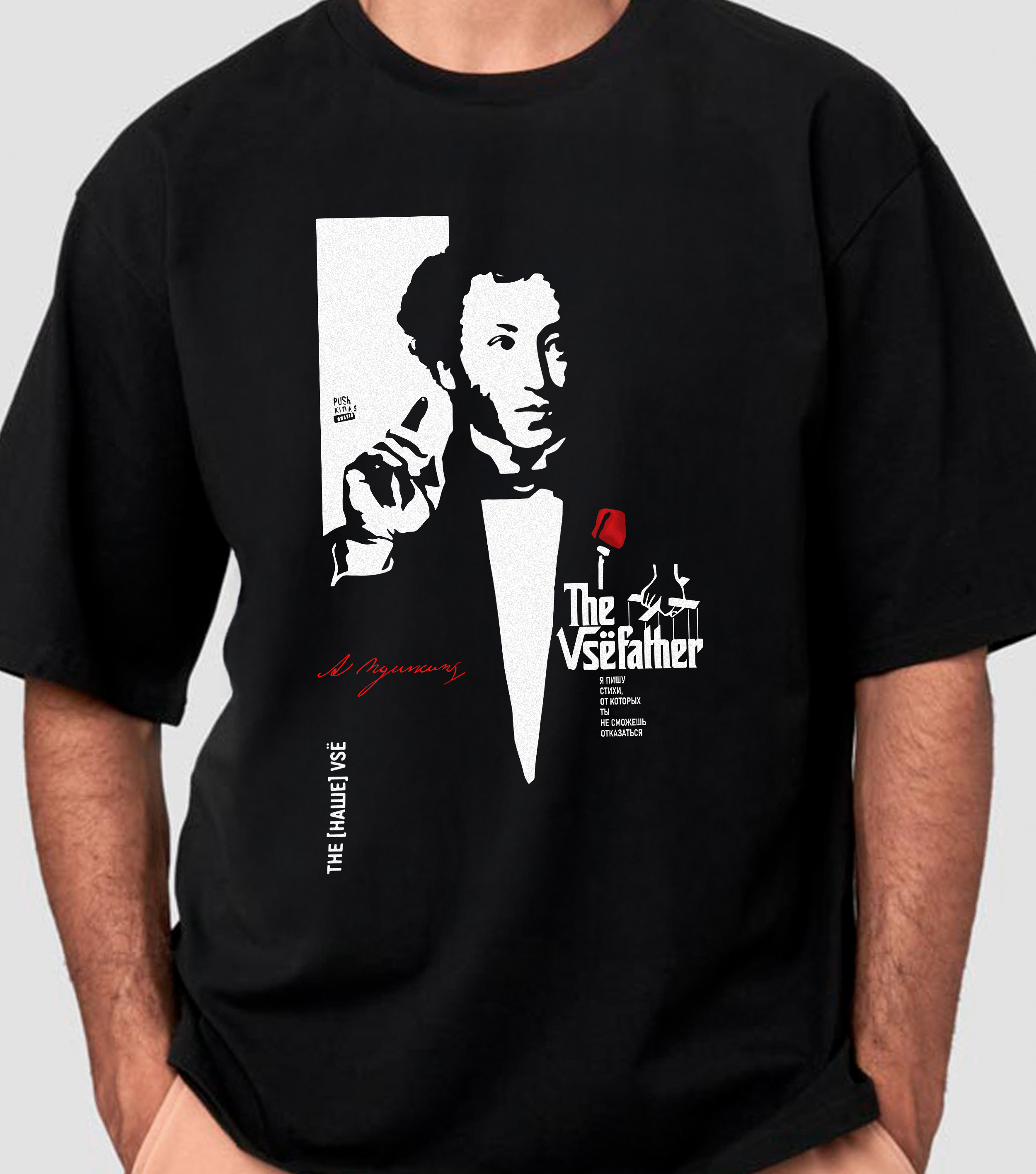 Футболка Крестный отец. Пушкин - Купить с доставкой по России в магазине Bullfinch. Уни оверсайз, Мужская одежда. Гипоаллергенные краски. Премиальное качество. Размеры: S
