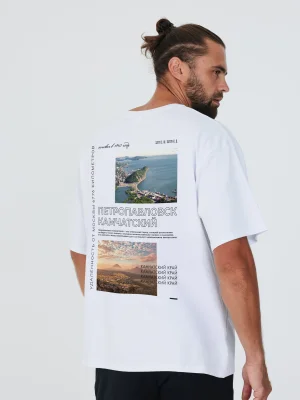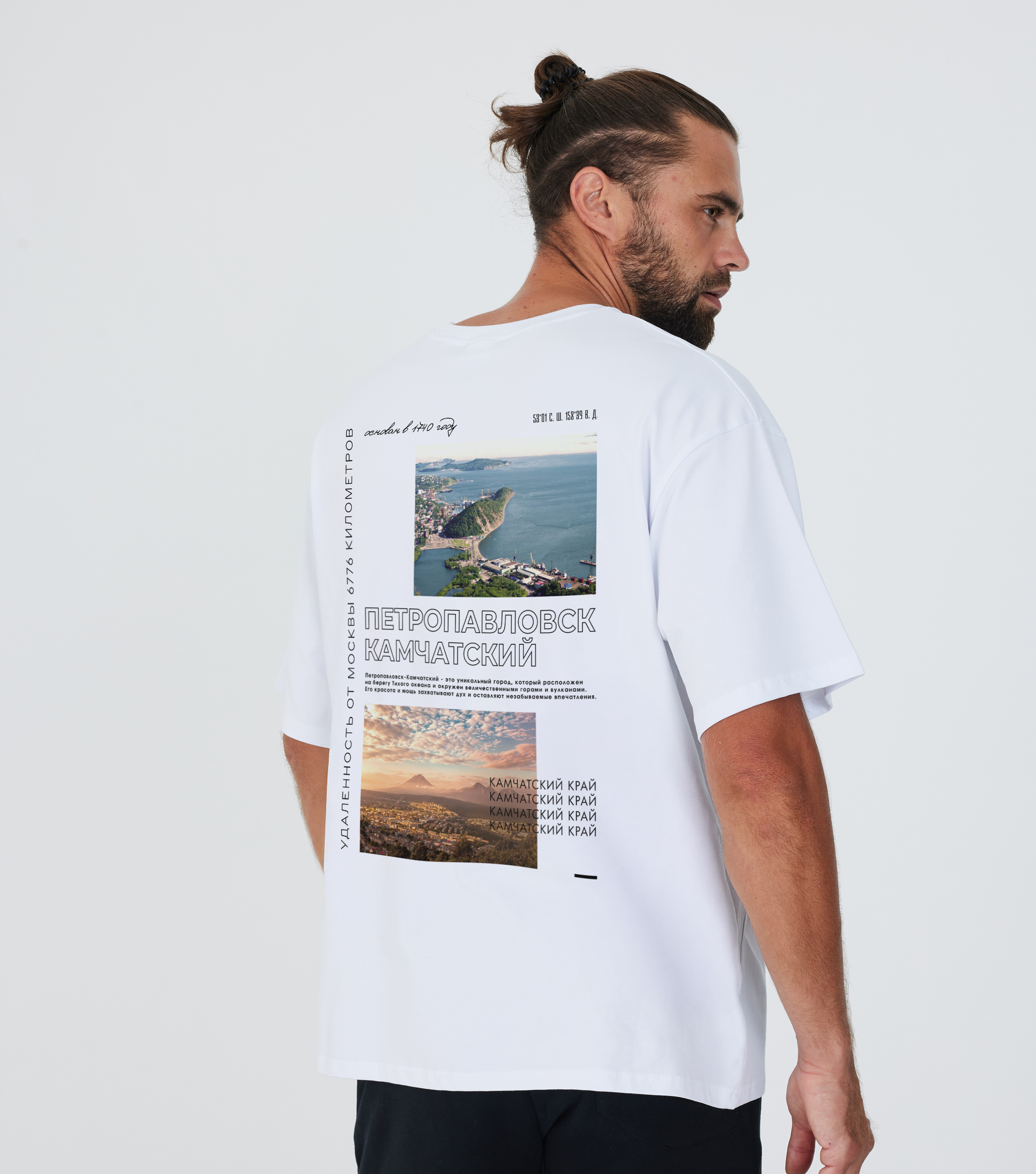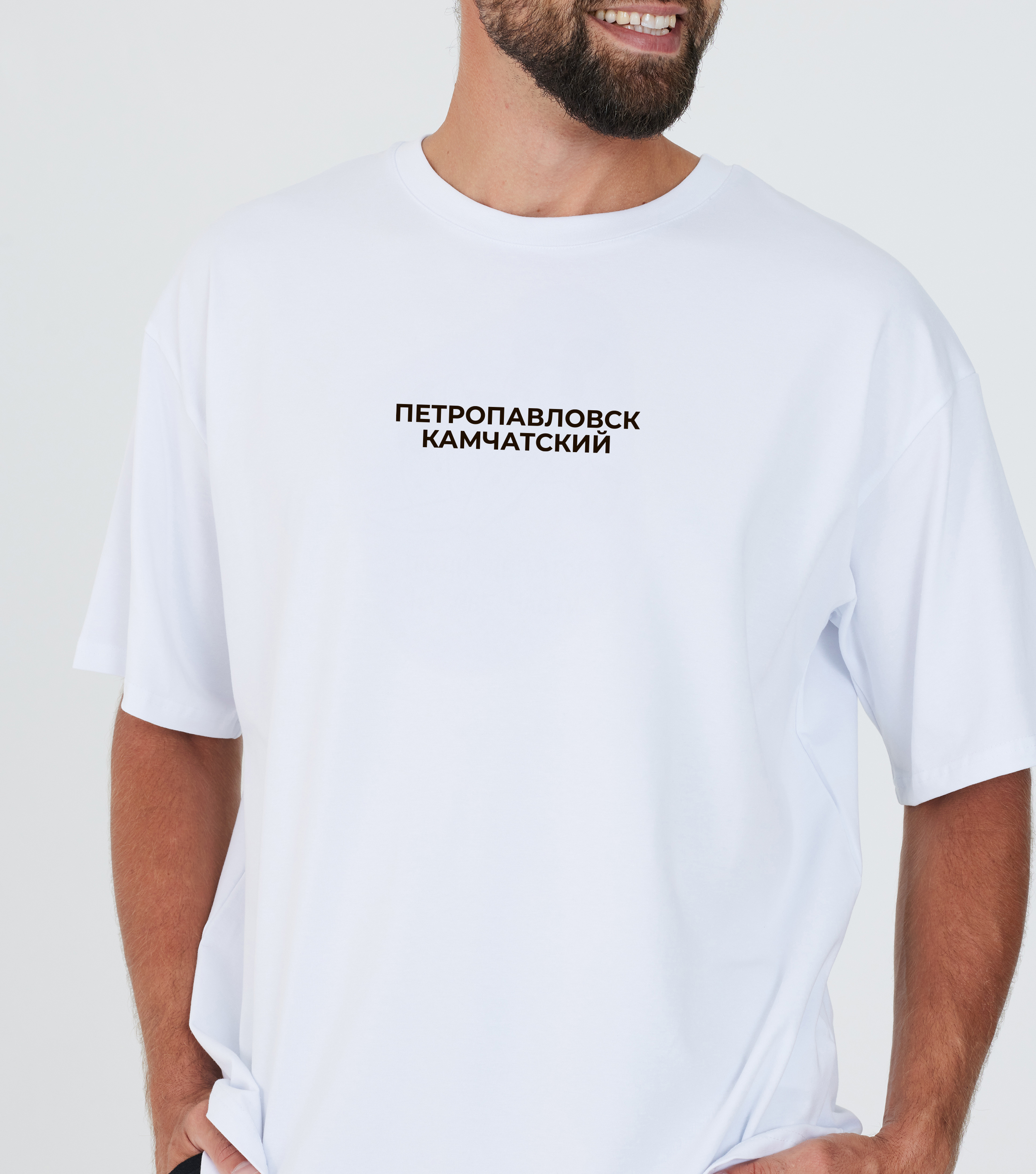 Футболка Петропавловск - Камчатский - Купить с доставкой по России в магазине Bullfinch. Уни оверсайз, Мужская одежда. Гипоаллергенные краски. Премиальное качество. Размеры: XS, S, M, L, XL, XXL