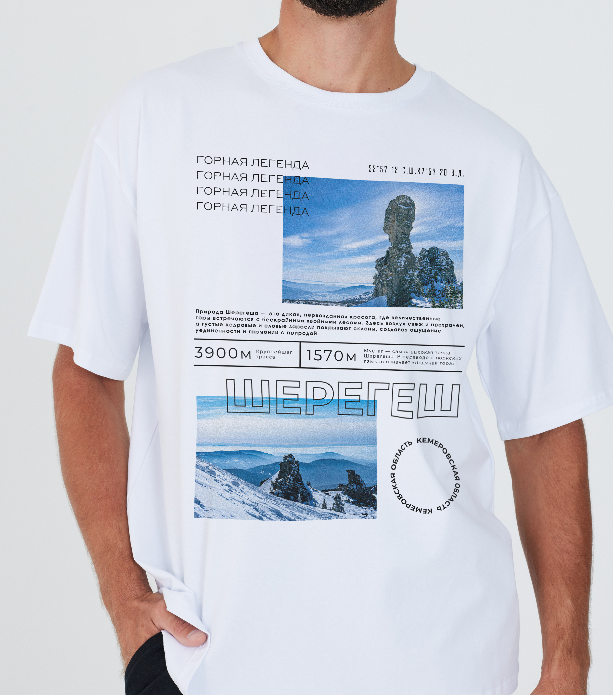 Футболка Шерегеш - Купить с доставкой по России в магазине Bullfinch. Уни оверсайз, Мужская одежда. Гипоаллергенные краски. Премиальное качество. Размеры: XS, S, M, L, XL, XXL