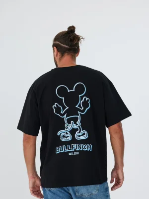 Футболка черная Микки Маус. Синий - Купить с доставкой по России в магазине Bullfinch. Уни оверсайз, Мужская одежда. Гипоаллергенные краски. Премиальное качество. Размеры: S