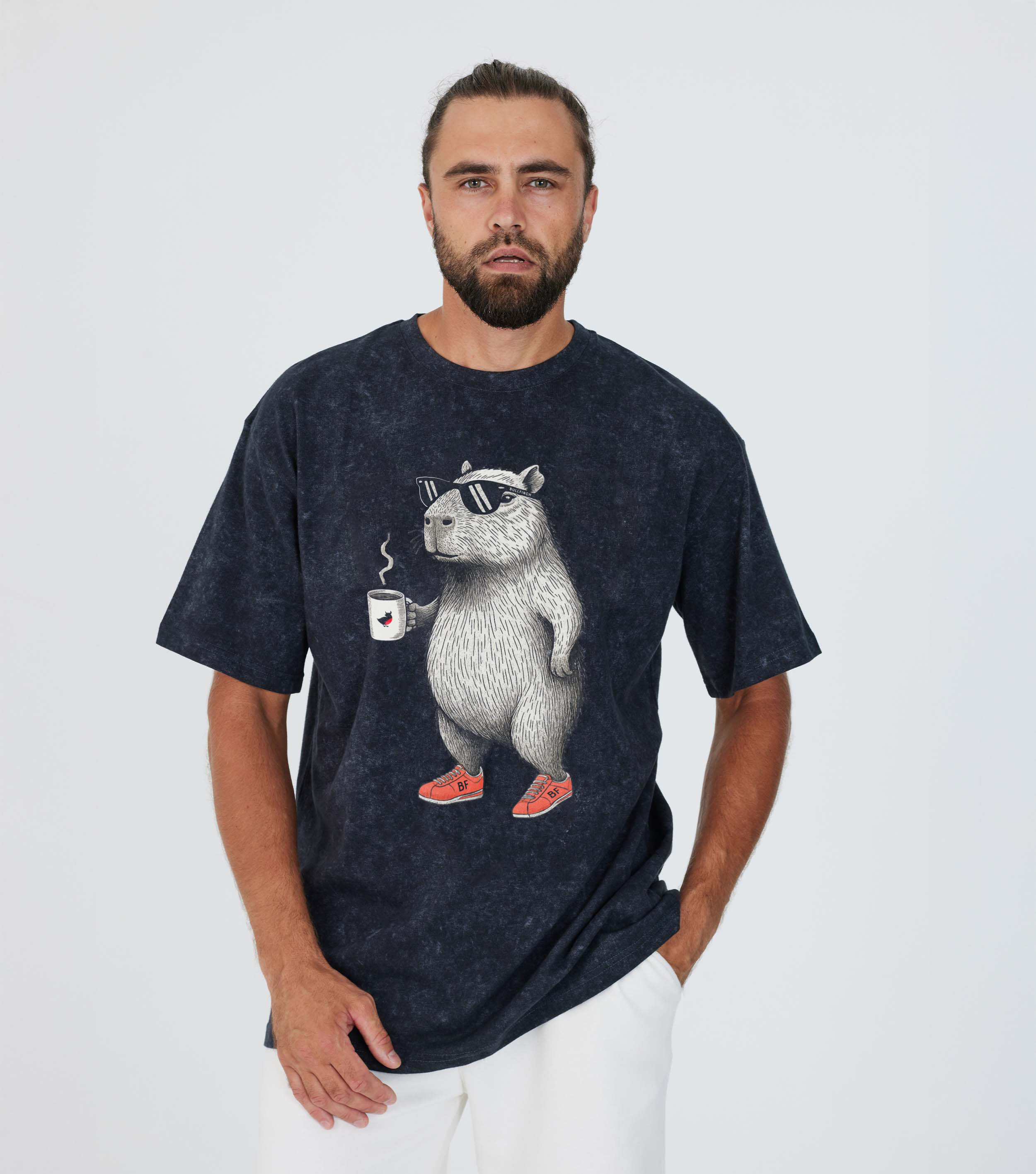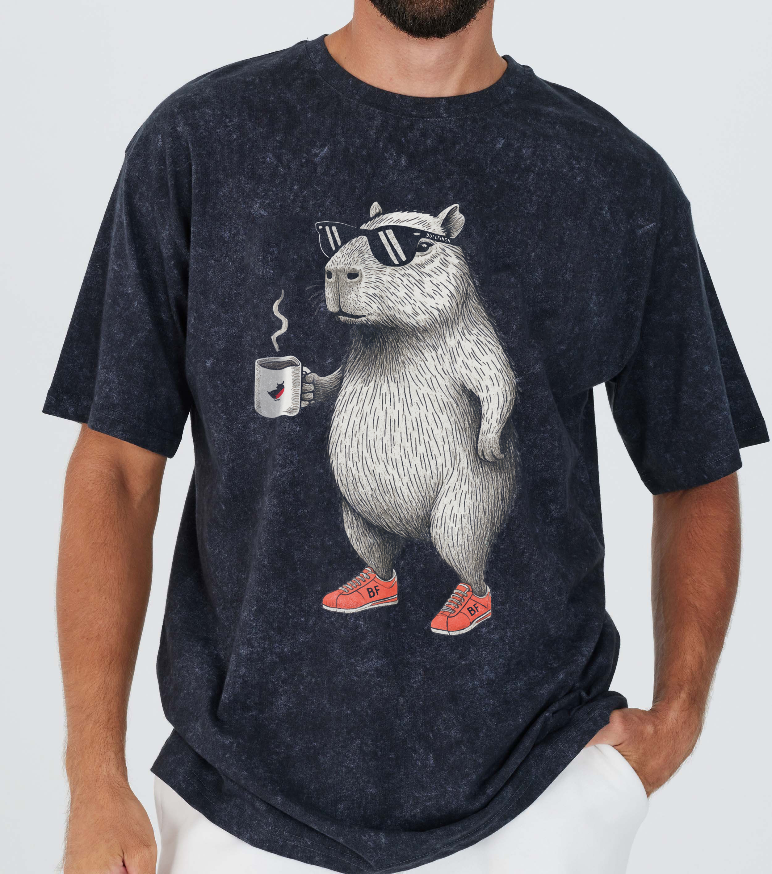 Футболка Капибара в кедах - Купить с доставкой по России в магазине Bullfinch. С вареным эффектом, Мужская одежда. Гипоаллергенные краски. Премиальное качество. Размеры: S, M, L, XL