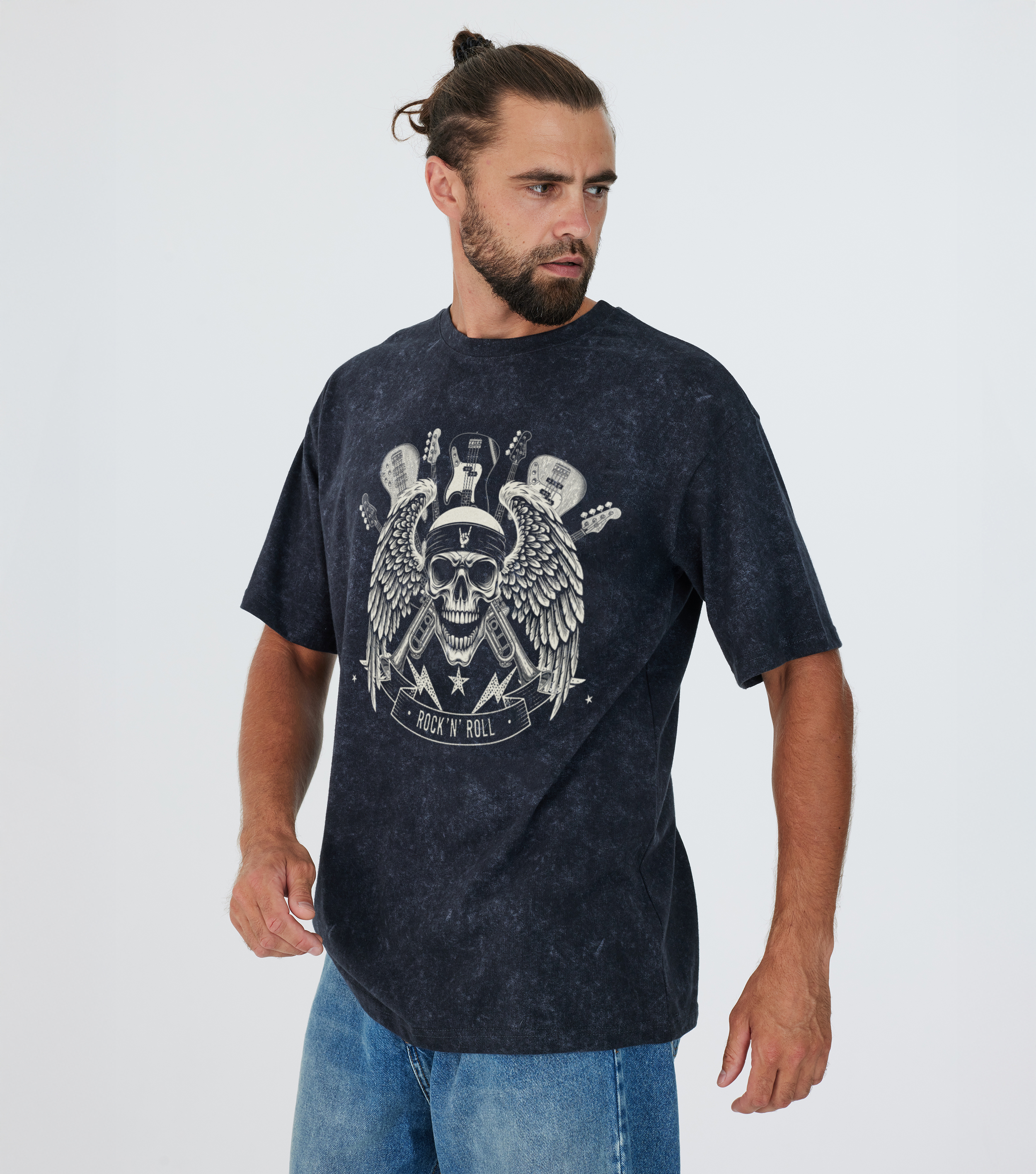 Футболка Rock'N'Roll - Купить с доставкой по России в магазине Bullfinch. С вареным эффектом, Мужская одежда. Гипоаллергенные краски. Премиальное качество. Размеры: S, M, L, XL